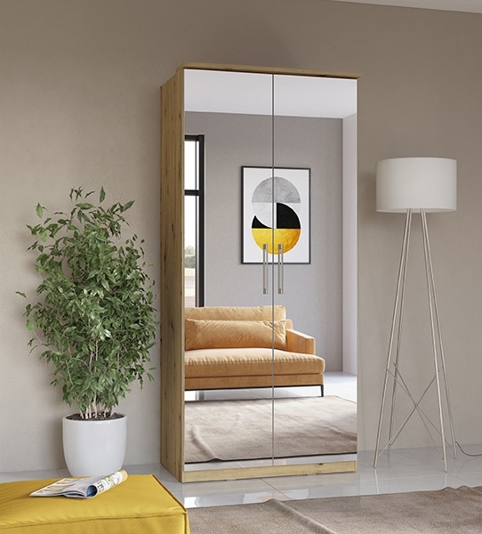 Dvodijelni ormar OPTIMA sadrži policu za odlaganje odjeće i šipku za vješanje košulja, svečane odjeće i ostale važne odjeće. Ormar sadrži i ogledalo, koje će vam omogućiti da izgledate dotjerano. Dostupan je u kombinaciji hrasta artisan i bijele boje visokog sjaja. Rasvjeta i stranice nisu uključene u cijenu. Ako ih želite kupiti, kontaktirajte nas.