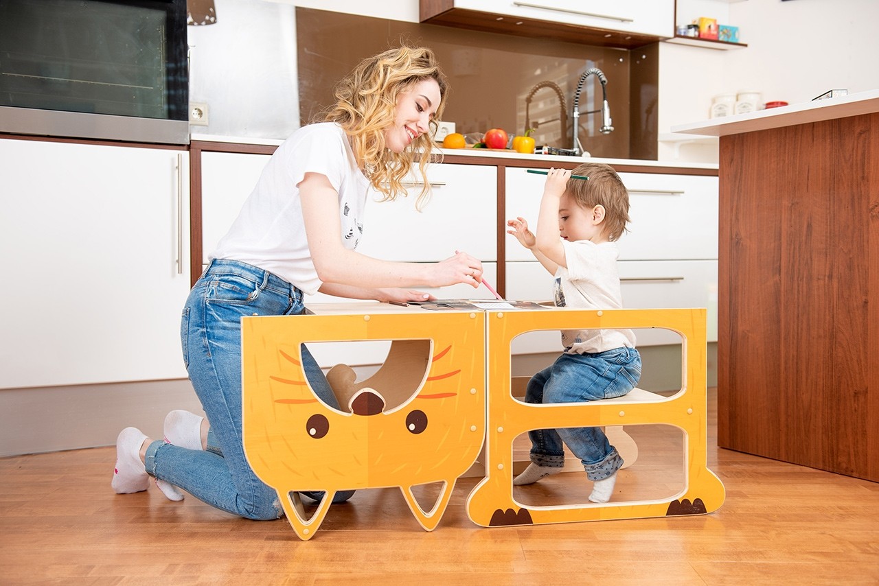 Dijete Montessori stolicu može koristiti kao set stola i stolice ili kao prikladni štap sa štitnicima kako bi lakše došlo do viših površina koje mu još nisu dostupne. Stolica je dizajnirana tako da je dijete može samostalno koristiti bez pomoći odraslih, tako da dijete može samostalno istraživati ​​i stvarati te brže otkrivati ​​svoje sposobnosti. Stolica je dovoljno prostrana da je istovremeno može koristiti dvoje djece. Stolica je dostupna u četiri slatka životinjska motiva koja oživljavaju stolicu, pa će djeci biti zanimljivija.