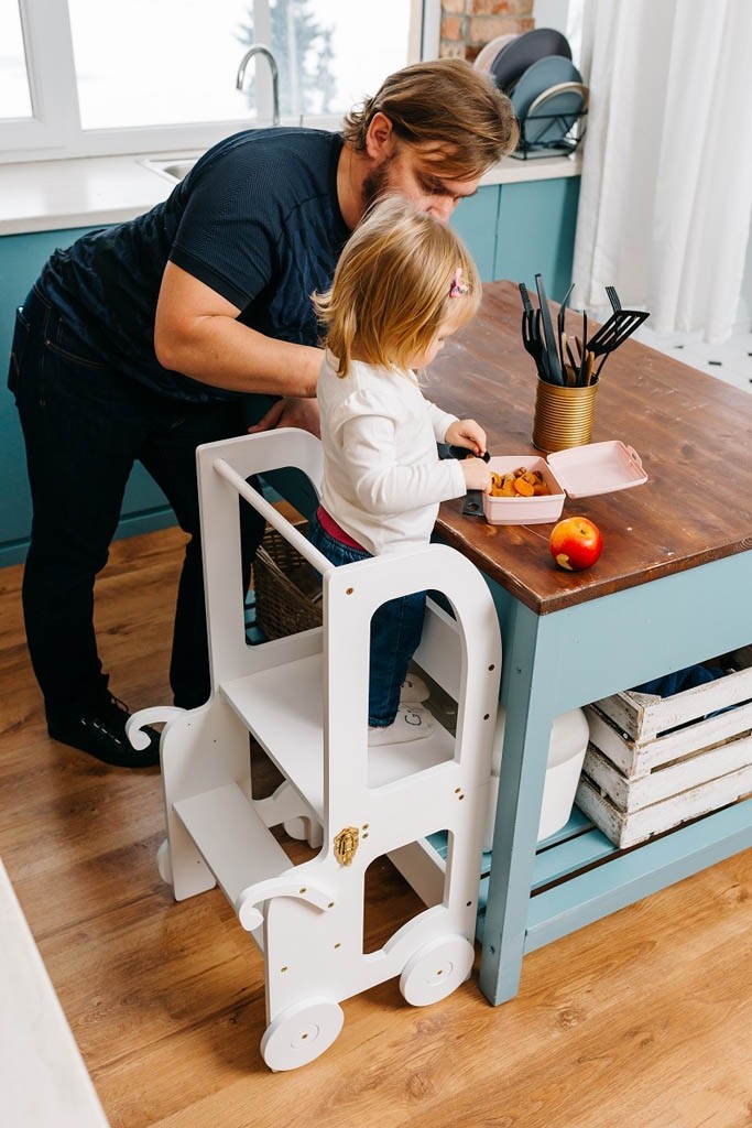 Montessori stolica pomagalo dijete može koristiti kao set stolića i stolice,ili kao priručno sredstvo s štitnicima koje mu omogućava pristup trenutno teško dostupnim mjestima. Stolica je napravljena u svrhu samostalnog djetetovog korištenja bez pomoći odraslih kako bi dijete samo istraživalo i kreativno stvaralo te brže otkrilo svoje vlastite sposobnosti. Stolica je dovoljno prostrana da ga istovremeno može koristiti čak dvoje djece