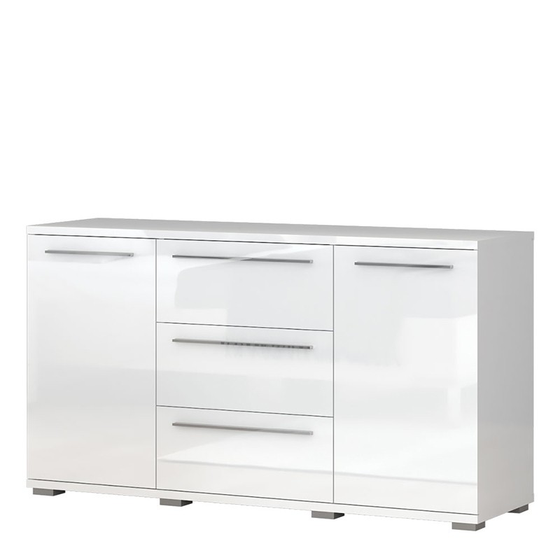 Komoda KALLA PIANO sadrži funkciju tihog zatvaranja, koja sprječava prebrzo trošenje. Nudi vam dragocjeni dodatan prostor za pohranu odjeće, posteljine, igrača te drugih predmeta po želji jer sadrži čak tri ladice te dvoje vrata, iza kojih su dvije police. Dostupna je u bijeloj i bež boji u visokom sjaju. Komoda je izrađena od oplemenjene iverne ploče, a svi vidljivi djelovi lakirani su UV lakom, što je ćini puno otpornijom na oštećenja. Komoda je dio kolekcije spavaće sobe PIANO, stoga pogledajte još ostale artikle ovog programa!