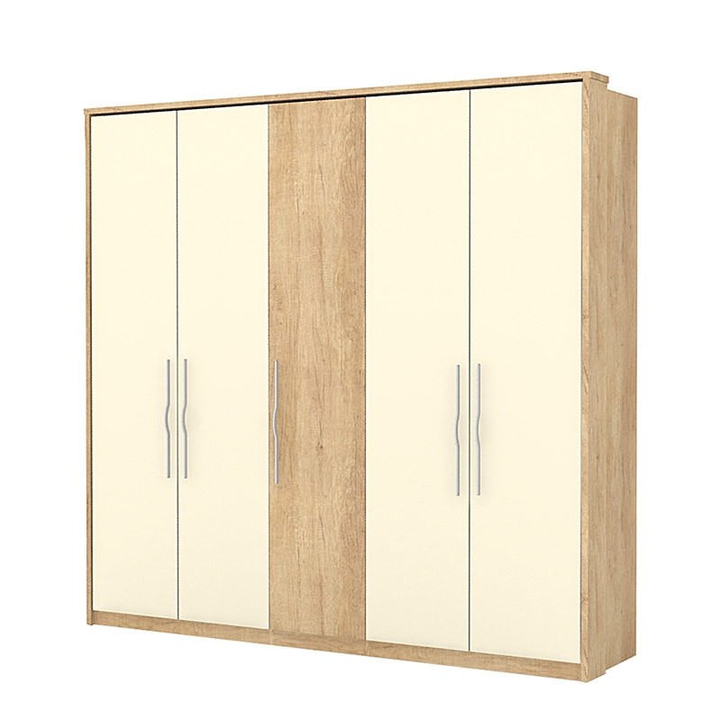 5-delna garderobna omara Kalla Square je odlična izbira za vaš dom saj vam nudi veliko prostora za shranjevanje in lep, moderen design. Izdelana je iz kvalitetnega MDF materiala v moderni barvni kombinaciji bež in nebraska hrast.