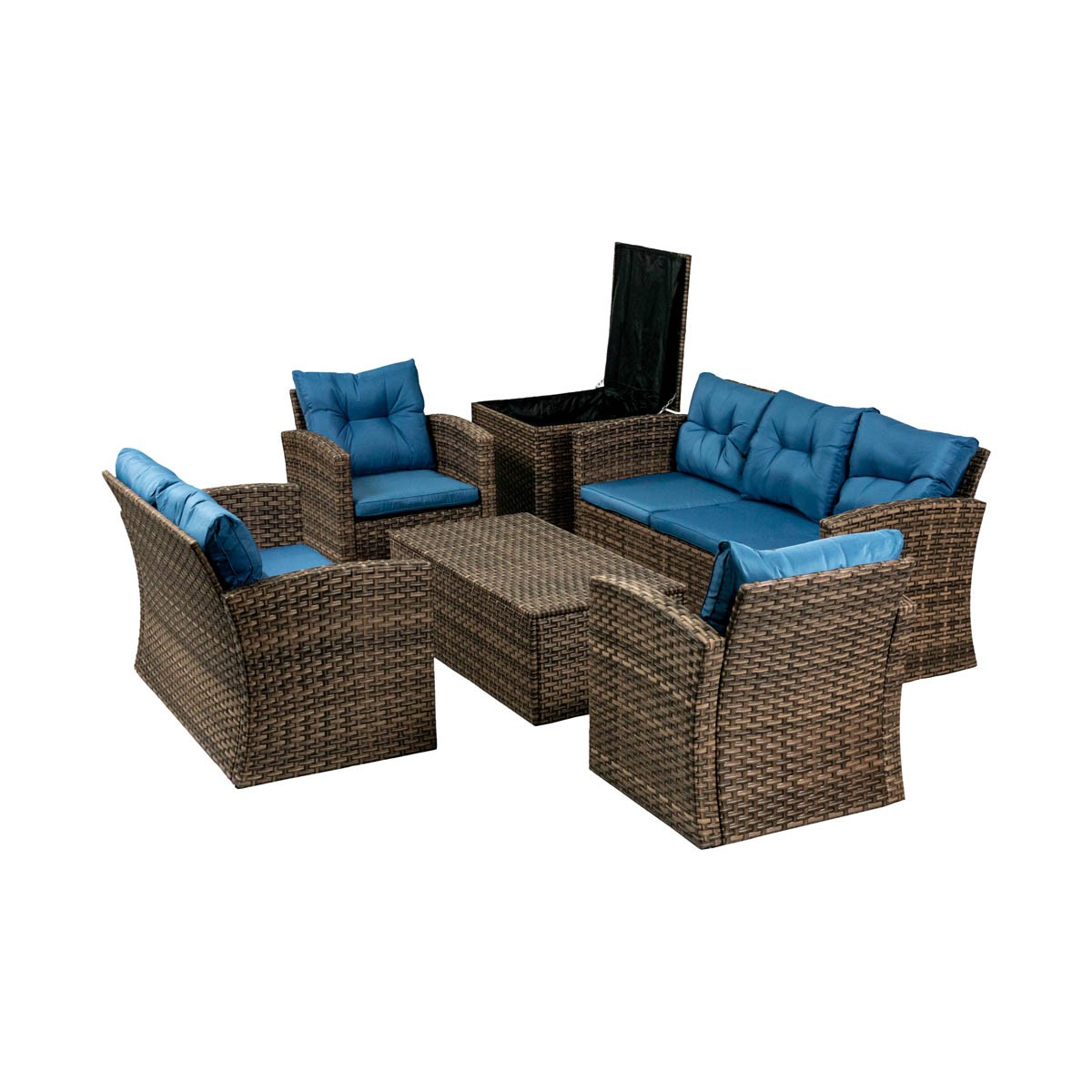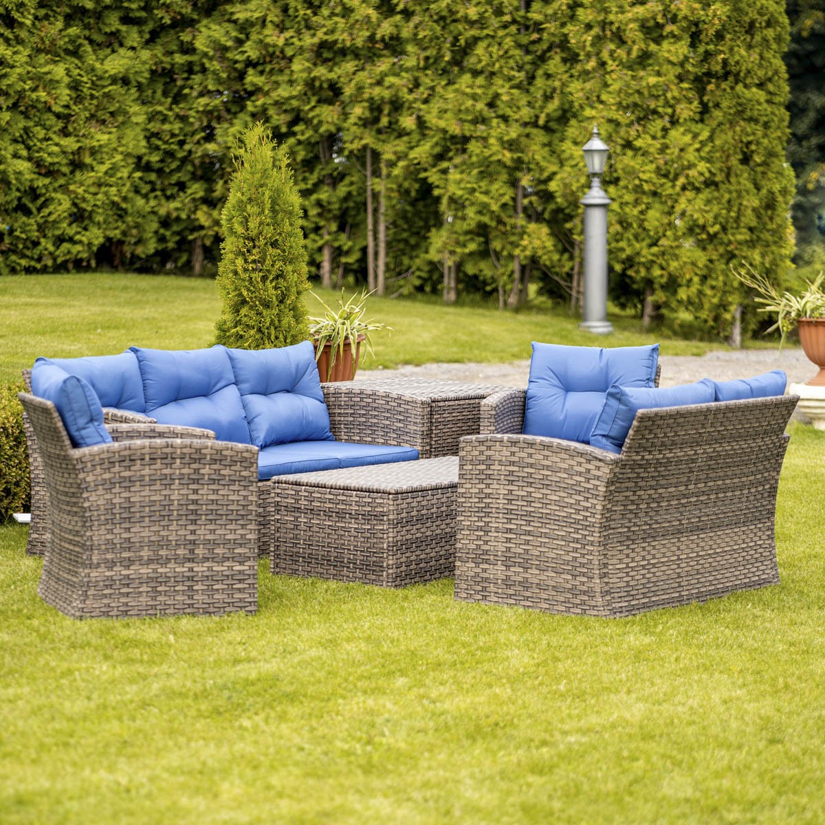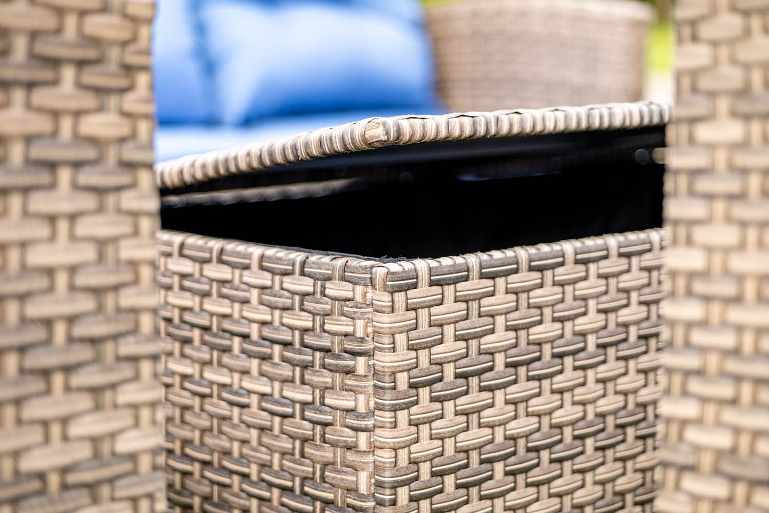 Prostrani i moderni 6-dijelni vrtni set OCEAN pogodan je prvenstveno za vrtove i prostrane terase. Set je izuzetno funkcionalan, jer glavni stol služi i kao spremište za jastuke, kao i bočni stol, koji omogućuje da stvari budu sigurne u kišnim danima. Okvir je od čelika.