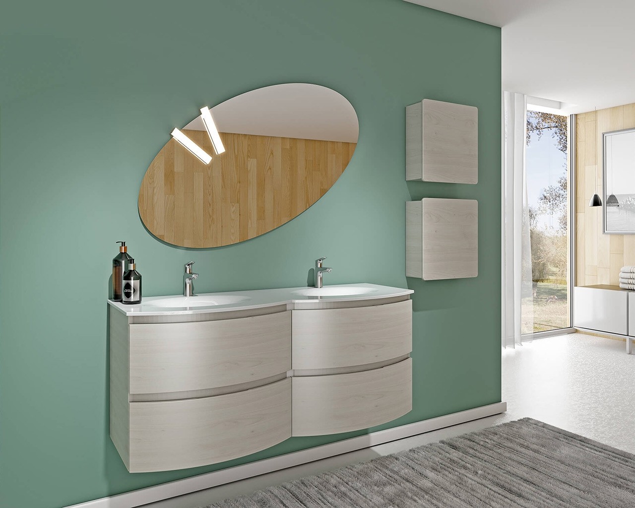 8U1 DVOJNI KUPAONSKI BLOK ARMONIA je moderno i funkcionalno rješenje za velike kupaonice. Dvostruki kupaonski blok uključuje čak 8 dijelova koje vam daju dosta prostora za pohranu. Set uključuje dva ormarića s ladicama, dupli kvalitetan umivaonik, veliko praktično ogledalo, dvije LED svjetiljke i dva dodatna viseća ormarića. S kupaonskim blokom Armonia nikada vam neće ponestati mjesta za pohranu sve vaše kozmetike, ručnika, sredstava za čišćenje i svih ostalih stvari.