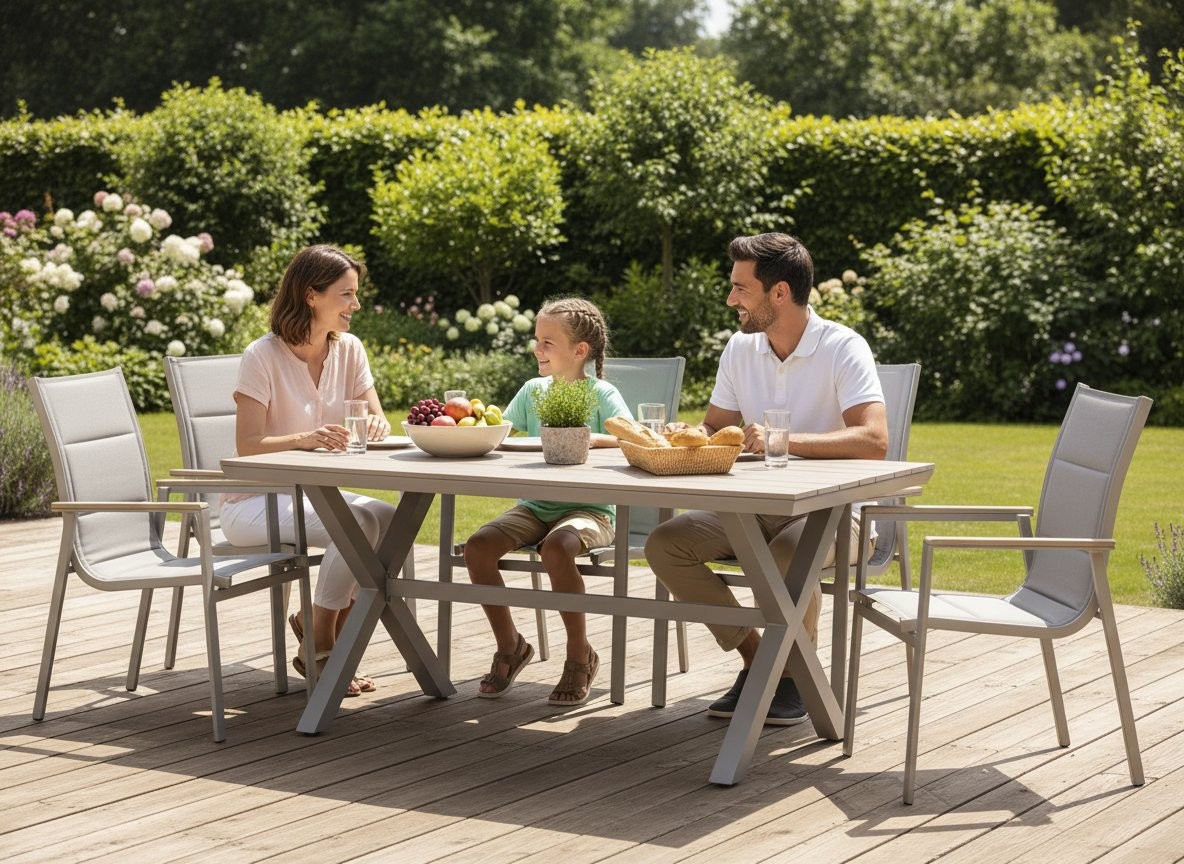Aluminijski vrtni stol Polywood 180 x 100 cm (bež) je praktičan stol čistih linija i svestrane namjene. Kombinacija boja bež i naravna stvara usklađen izgled proizvoda. Pri izdelavi su uporabljeni materijali, kao su aluminij i drvo.