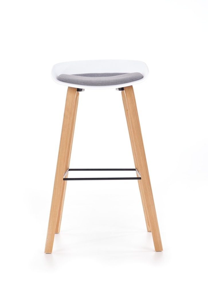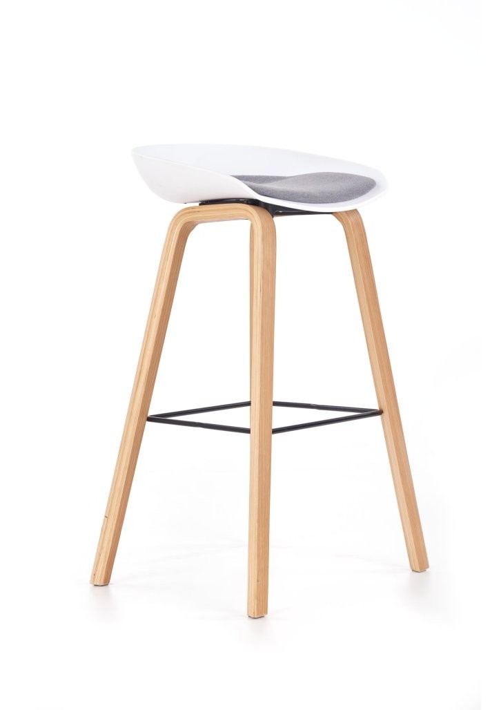 Barski stol Elsin skandinavskog dizajna ima bijelo sjedalo i sive detalje, izrađen je od tkanine, polipropilena i šperploče. Visina sjedišta je 76 cm, s okvirom u boji bukve. Elegantni dizajn odgovara modernim interijerima.