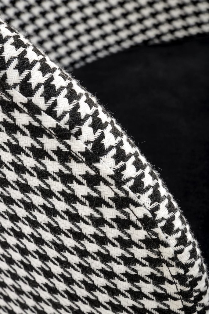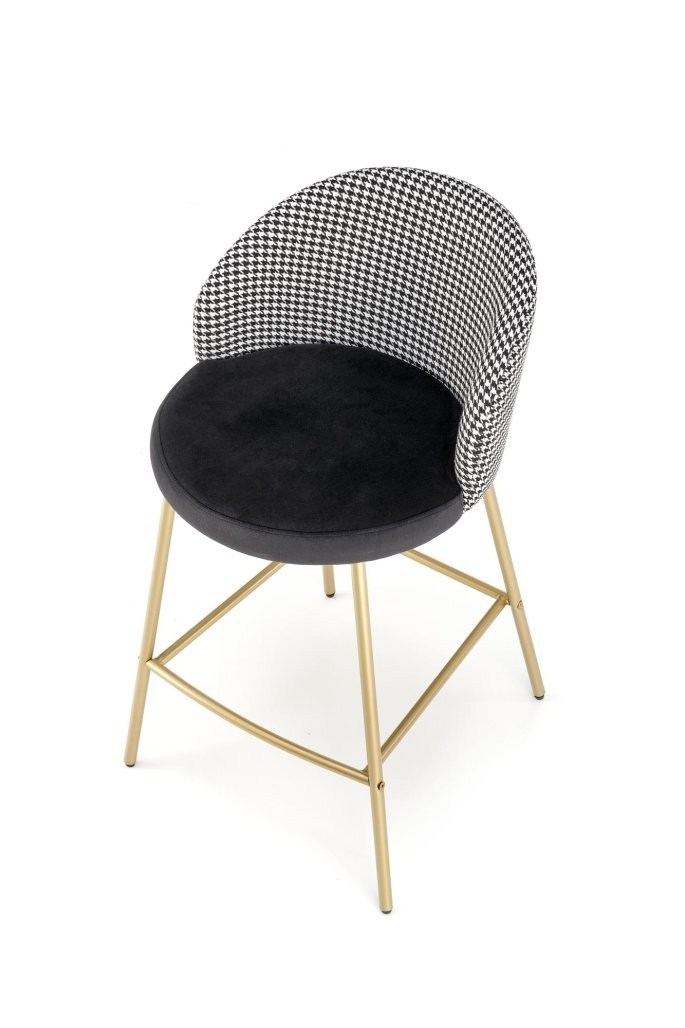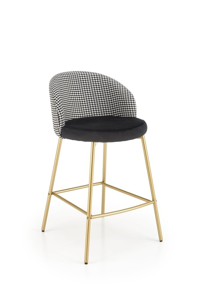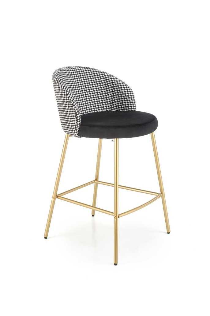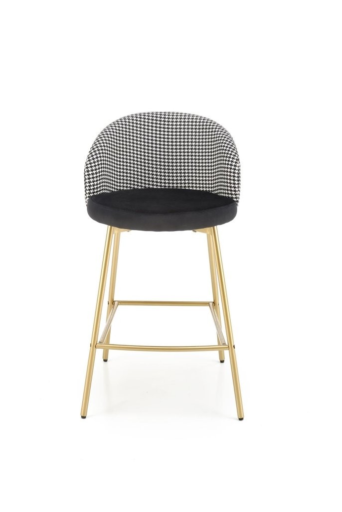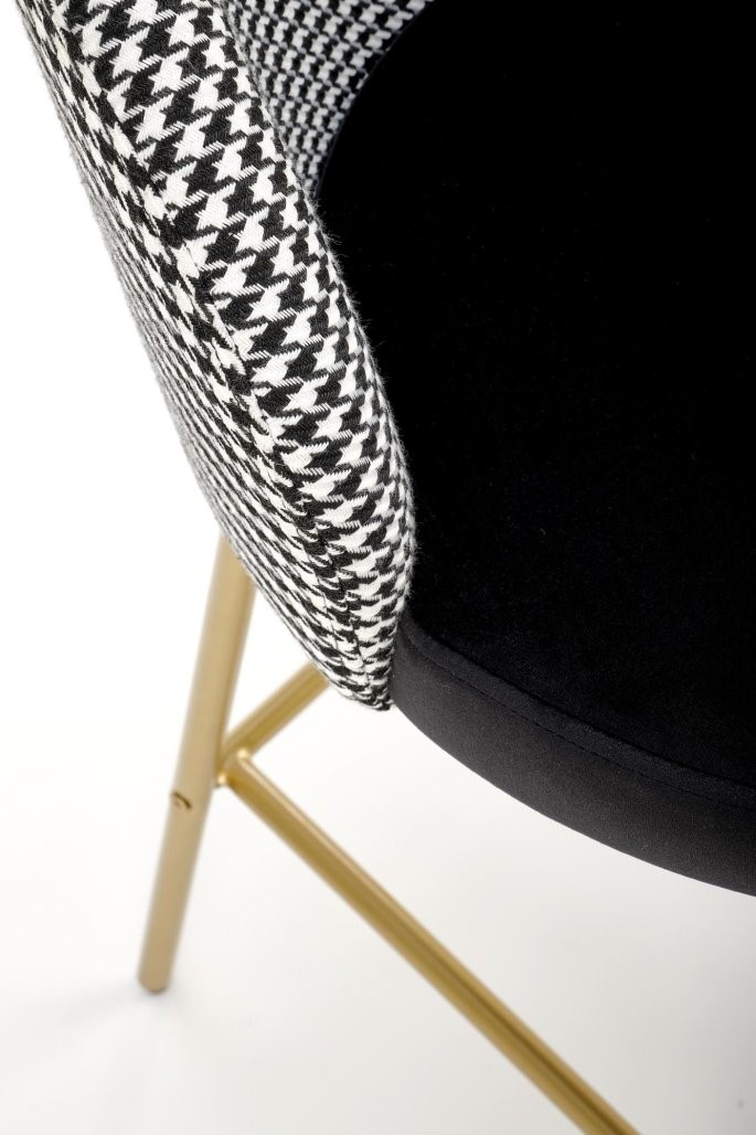 Barska stolica Verel s crno-bijelom presvlakom i zlatnim okvirom spaja modernost i eleganciju. Idealna je za prestižne kućne ili poslovne prostore.