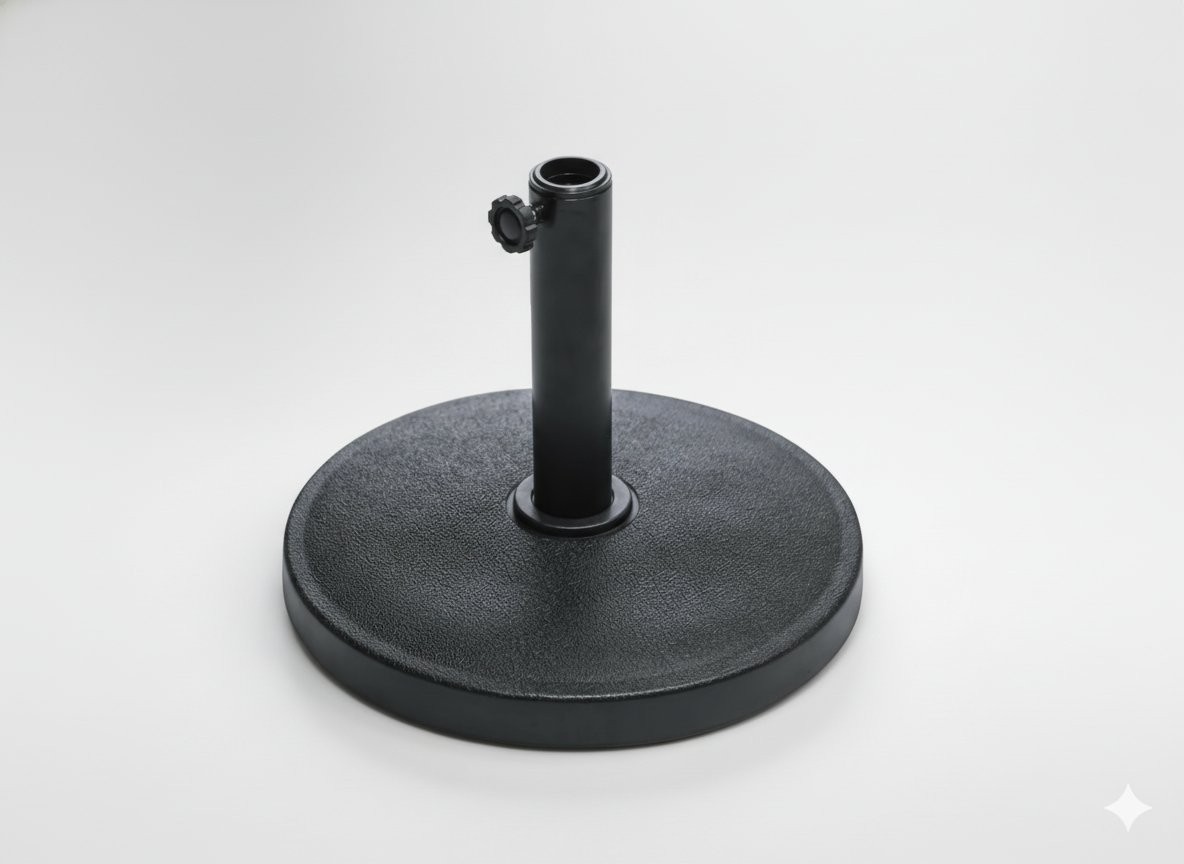 Betonska izvedba s težo 12 kg pomaga pri varnejšem pritrjevanju senčnika. Kovinska cev s vijačnim pritrdilom olajša prilagoditev drogu senčnika. Okrogla oblika deluje nevtralno i se zlahka vključi u različne ureditve.