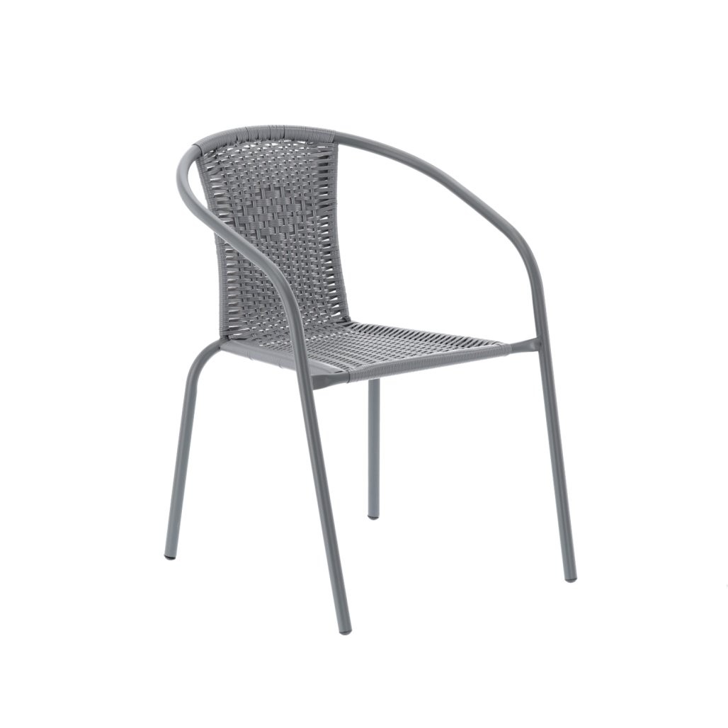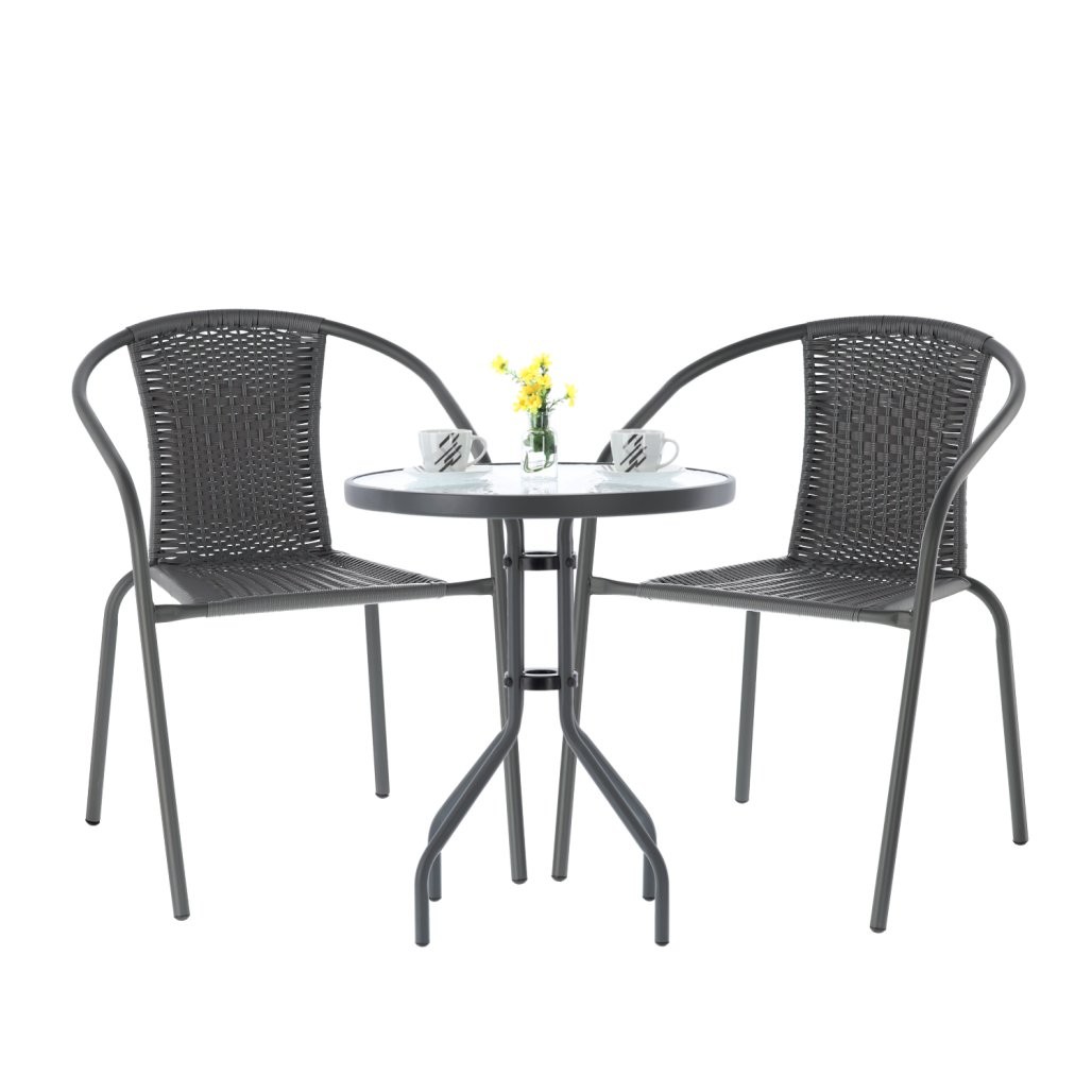 Bistro vrtna garnitura Tarin (mizica + 2 stola, siva) prikladan je za manje terase, balkone i ugodan kutak za kavu. Boja je siva.