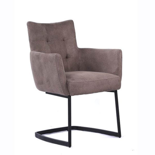 Blagovaonska stolica CALIXER je moderna blagovaonska stolica s rukonaslonima i tapeciranim leđnim djelom i sjedištem. Sjedište ima u unutrašnjosti džepićastu jezgru za udobno sjedenje, leđni dio je prošiven dekorativno. Postolje je obrađeno s prašnim lakiranjem u crni mat boji. Pogledajte si još barske stolice i blagovaonske stolice iz tog programa.