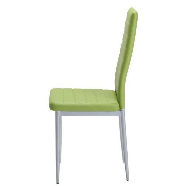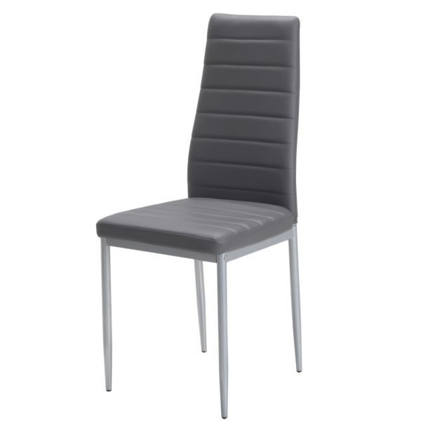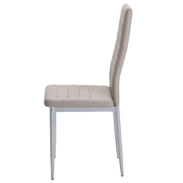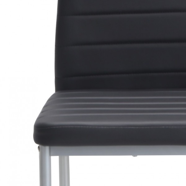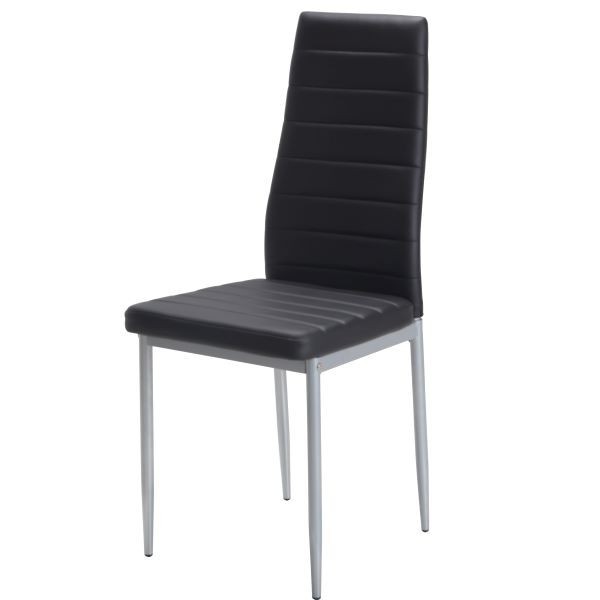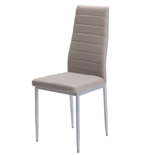 Klasična blagovaonska stolica DINNA II tapecirana je u elegantnu umjetnu kožu, dostupnu u čak šest različitih boja. Naslon i sjedište stolice sadrže dekorativne vodoravne šavove, koji još dodatno uljepšaju izgled stolice. Stolica sadrži klasične nogice, koje mu nude stabilnost i maksimalnu nosivost do 120 kg.