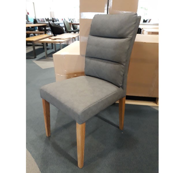Blagovaonska stolica GABI je stolica s nogami iz masivnog hrastovog drva. Stolica je po leđnom djelu i sjedištu tapecirana s kvalitetnom tkaninom. Na leđnom djelu ima dekorativno prošiveno. Visina sjedišta je 48 cm. Na raspolaganju je u tri različite boje.