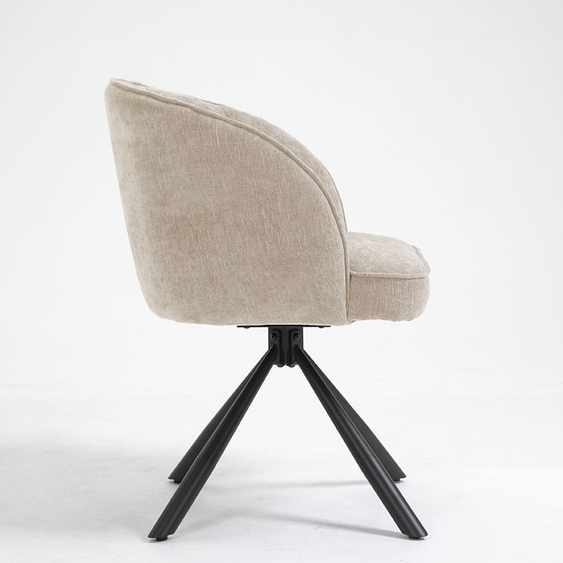 Moderna blagovaonska stolica HAIKO je okretna stolica koja je u potpunosti presvučena mekom tkaninom. Sjedalo je debljine 11 cm, širine 57 cm, dubine 47,5 cm i na visini 51 cm. Baza stolice izrađena je od metala i praškasto lakirana u crno za bolju zaštitu.