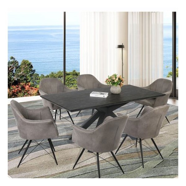 Blagovaonska stolica MELIOR je stolica s rukonaslonima i tapeciranim leđnim djelom i sjedištem. Postolje je obrađeno s grubim prašnim lakiranjem u crni boji. Na raspolaganju je u dvije različite boje.