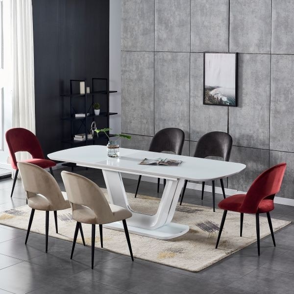 Moderno dizajnirana blagovaonska stolica MILA, dostupna je u sivoj, taupe, te snažnoj crvenoj boji. Stolica je u cjelini tapecirana u udobnu tkaninu, koja vam nudi puno udobnosti kod sjedenja. Sadrži klasične nogice, koje stolici garantiraju stabilnost i maksimalnu nosivost do 120 kg.