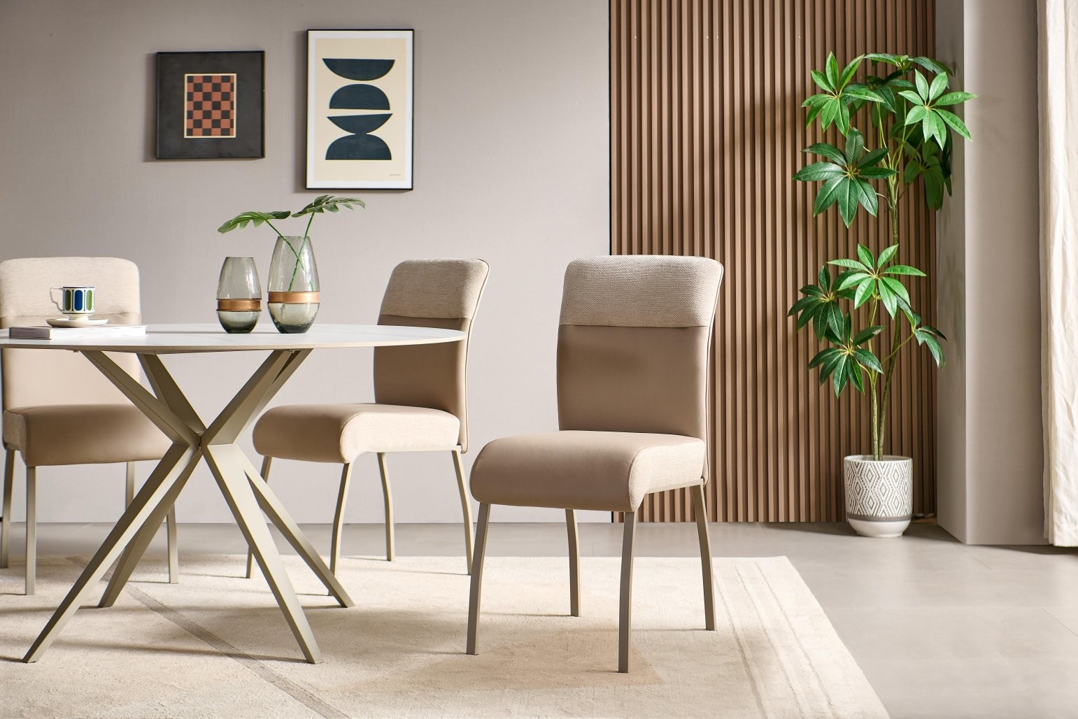 Blagovaonska stolica TINTIN IV (bež) donosi udobnost i moderan izgled u vašu blagovaonicu. Izrađena je od kvalitetne tkanine i metala, što osigurava dugotrajnost i lako održavanje. Savršen izbor za svaki dom.