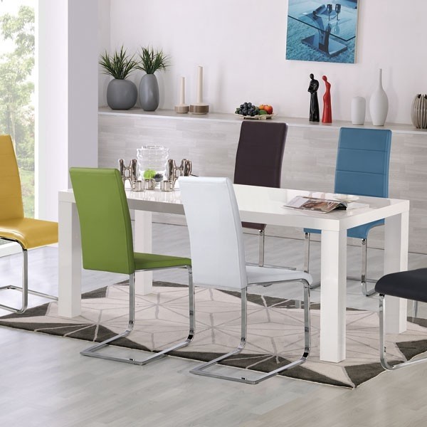 Blagovaonski stol BOMBINA III u bijeli boji je napravljen iz MDF materijala u visokom sjaju. Debljina nogu je 8x8 cm, debljina ploče je 4 cm. Na raspolaganju je u različitim dimenzijama.
