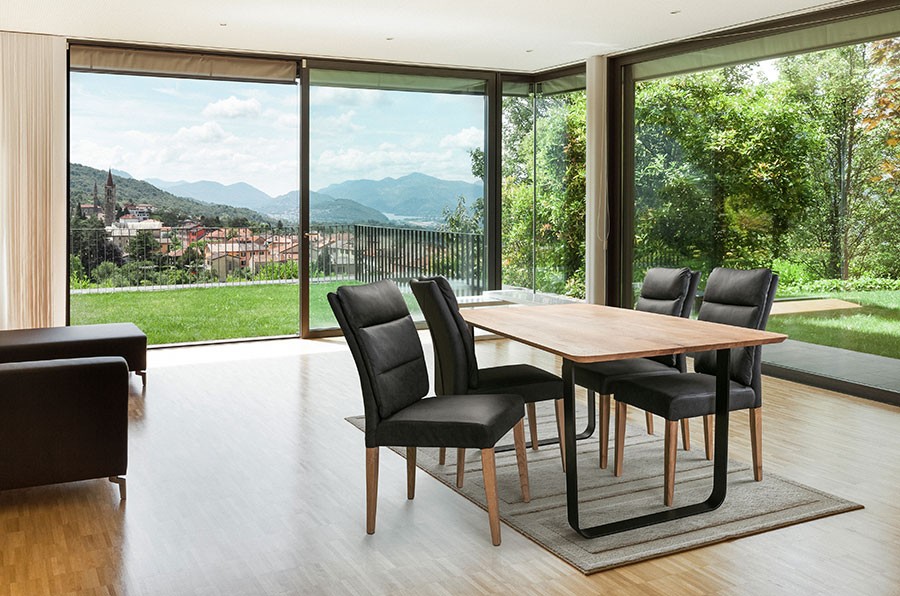 Blagovaonski stol FRIEDBERG je napravljen iz masivnog hrastovog drva u dvije različite dimenzije. Stol ima metalne crne noge, koje su na rubovima zaokružene.