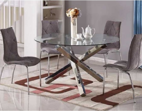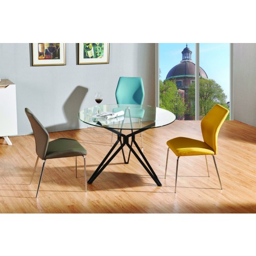Tražite li moderan okrugli blagovaonski stol? Onda je BLAGOVAONSKI STOL TAYLOR izvrstan izbor za vas! Snažna kromirana baza izrađena od metalnih cijevi i ploča iz kaljenog stakla očarat će vas i podsjetiti na skulpture iz modernih galerija. Unesite umjetnost u svoj svakodnevni život!