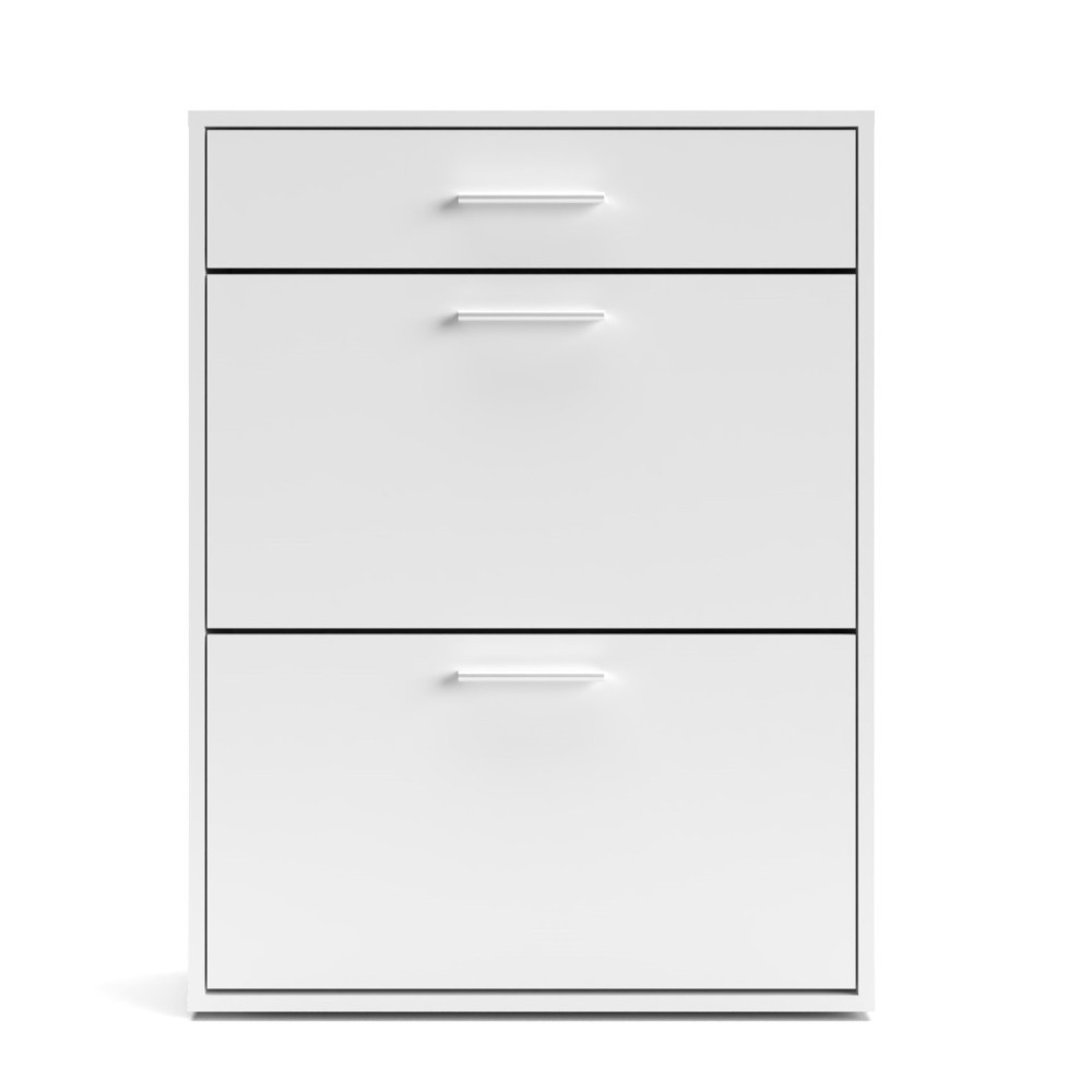 Začinite svoj dom modernim ormarićem za cipele GABISO 2, dostupnim u bijeloj boji. Ovaj funkcionalni komad namještaja ne samo da će osvijetliti vaš ormar ili hodnik, već će se pobrinuti i za organizirano skladištenje vaših cipela i pribora. S dvostrukom ladicom i dodatnom ladicom za manje predmete, ovaj ormarić idealno je rješenje za svakoga tko cijeni red.