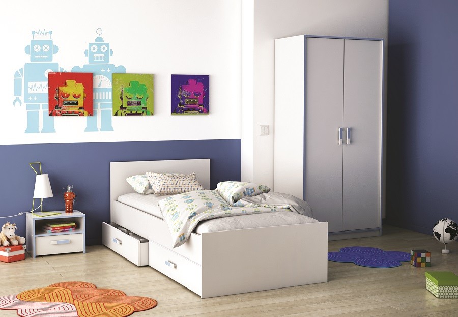 Dječja soba SWITCH sadrži krevet (pogodan za madrac 90 x 190 cm), ladicu (dodatak uz krevet), pisaći stol, noćni ormarić i dva prostrana ormara koji će pružiti više nego dovoljno prostora za odjeću vašeg mališana i druge dragocjenosti.