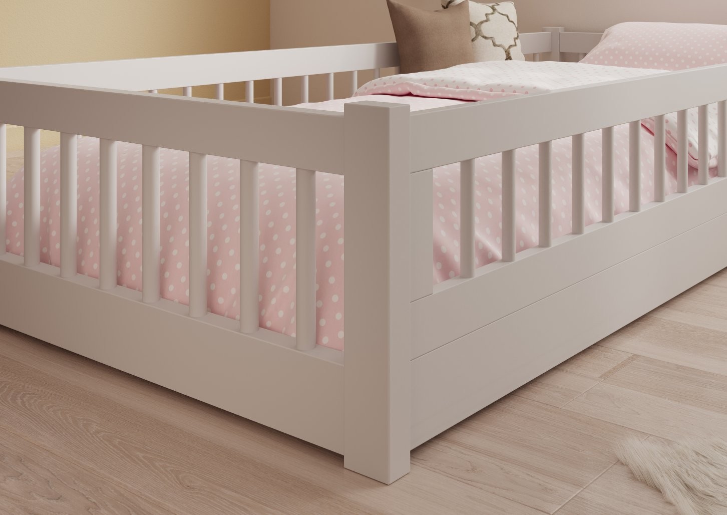 Dječji krevet Dori s madracem od borovog drva pruža udobnost, sigurnost i bezvremenski izgled. Dostupan u dvije boje i širinama za savršeno uklapanje u dječju sobu.