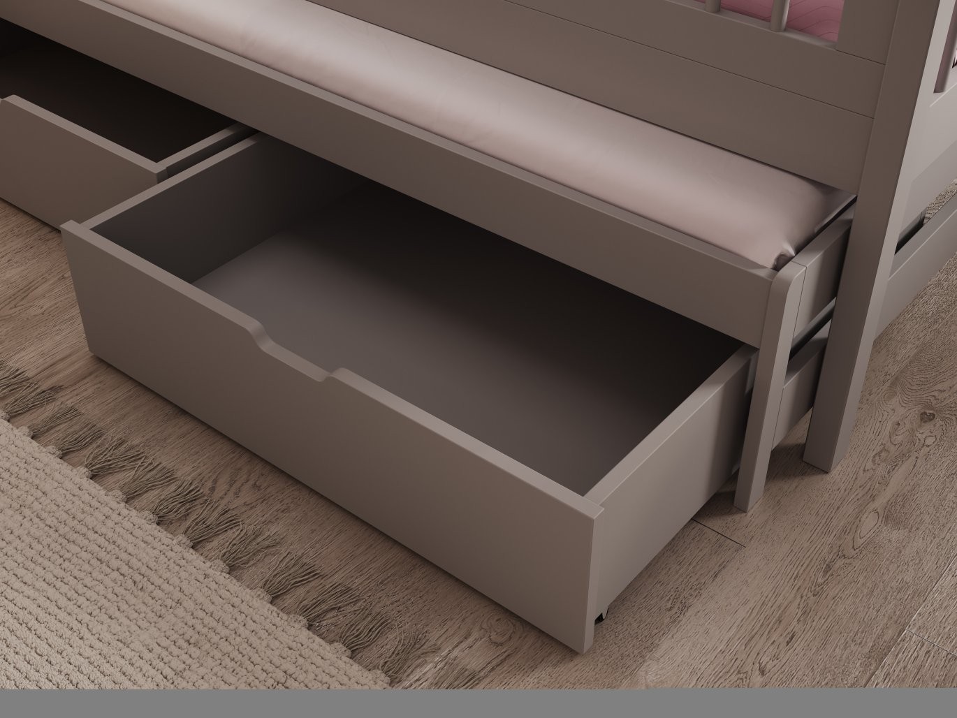 - 2 prostrane ladice – za pohranu posteljine, igračaka ili drugih stvari.