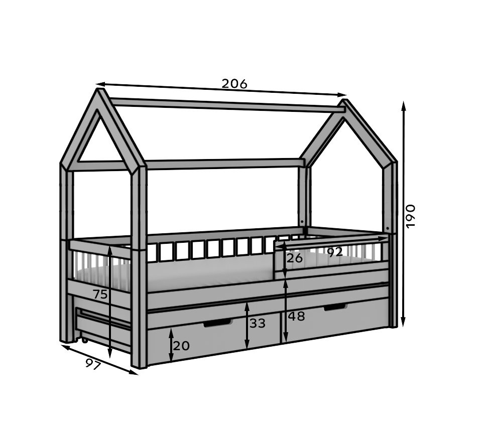 Dječji krevet kućica Artes II savršen je izbor za roditelje koji žele spoj funkcionalnosti, udobnosti i jedinstvenog dizajna u dječjoj ili tinejdžerskoj sobi. Njegov zanimljiv oblik kućice oduševit će svako dijete, a istovremeno nudi brojne praktične prednosti za svakodnevnu upotrebu.