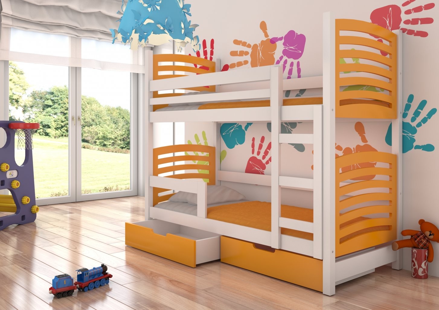 Dječji krevet na kat OSUNA savršeno je rješenje za uštedu prostora u dječjoj ili tinejdžerskoj sobi. Sa svojim funkcionalnim dizajnom i modernim izgledom pruža udobnost i sigurnost za dvoje djece.