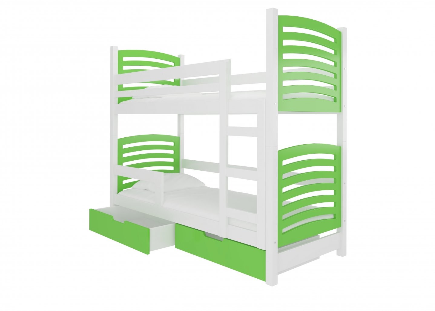 - Uključuje: Dva pjenasta madraca s uklonjivim pamučnim navlakama, fleksibilne letvice, dvije prostrane ladice za posteljinu