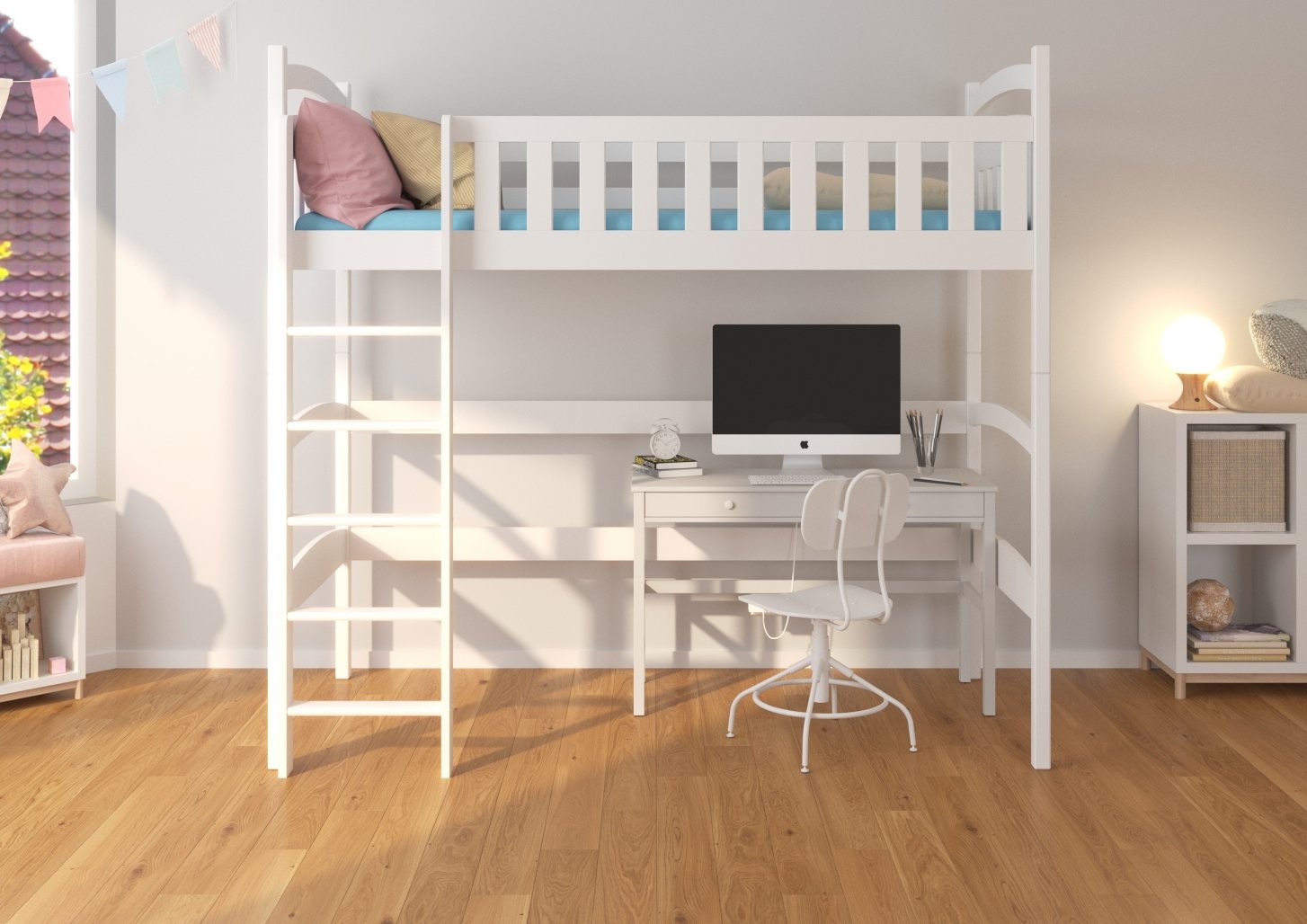 Ovaj krevet na kat savršeno se uklapa u moderne dječje sobe gdje je svaki kvadratni metar važan.