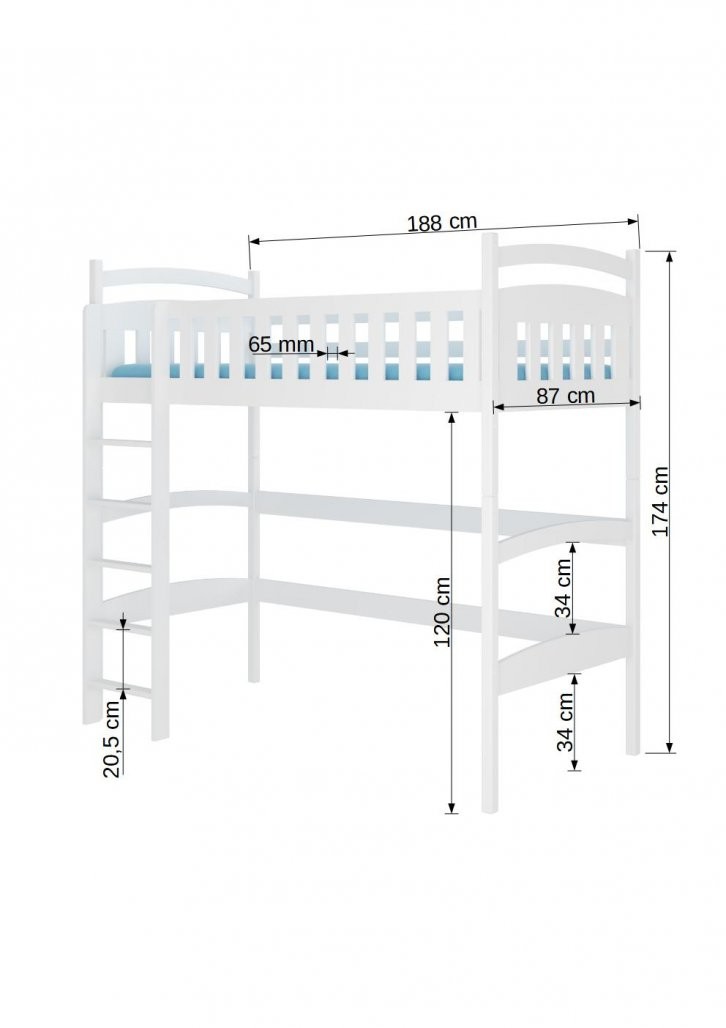 Dječji krevet na kat s galerijom MIAGO 180x80 savršen je izbor za roditelje koji traže praktično i estetsko rješenje za manje dječje sobe. Gornji dio kreveta pruža udoban prostor za spavanje, dok se donji dio može kreativno iskoristiti kao kutak za igru, učenje ili pohranu.