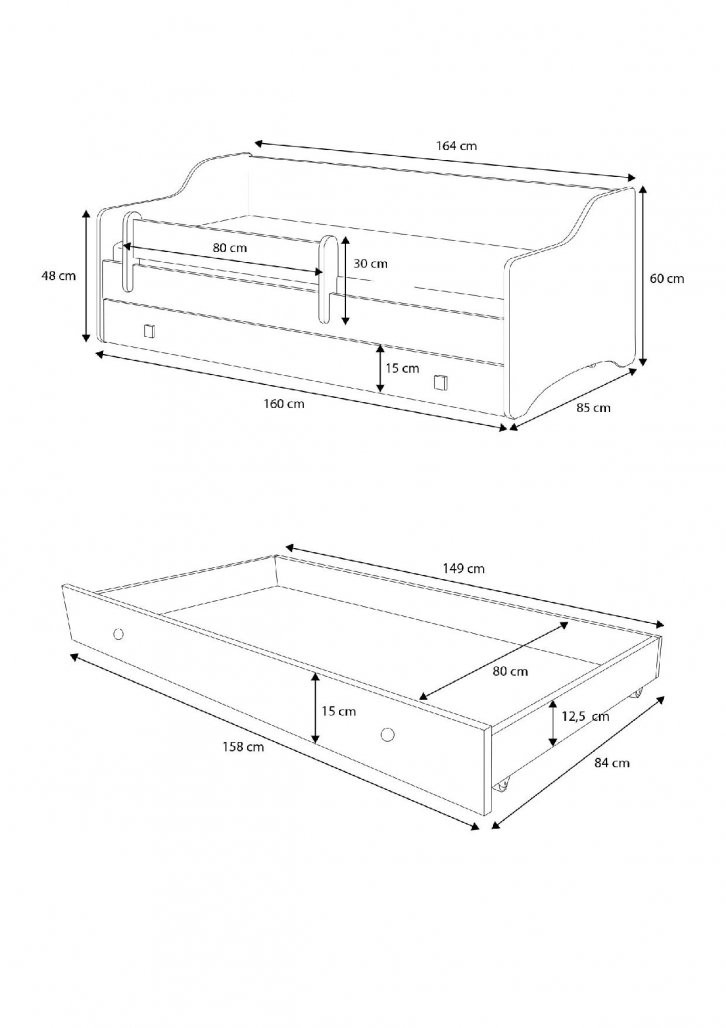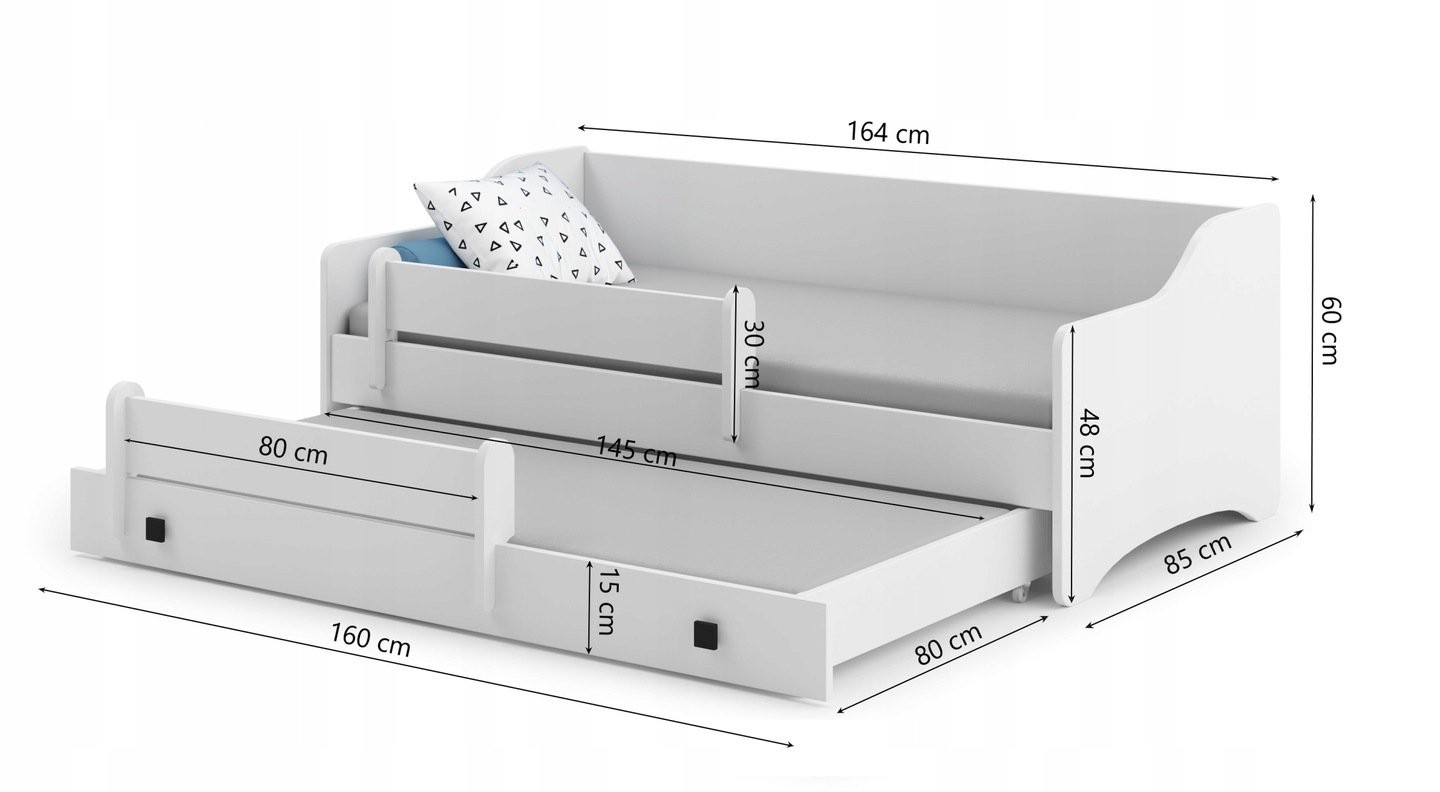 - Ležajevi: Gornja površina za spavanje: 160x80 cm, Izvlačni dio: 145x80 cm.