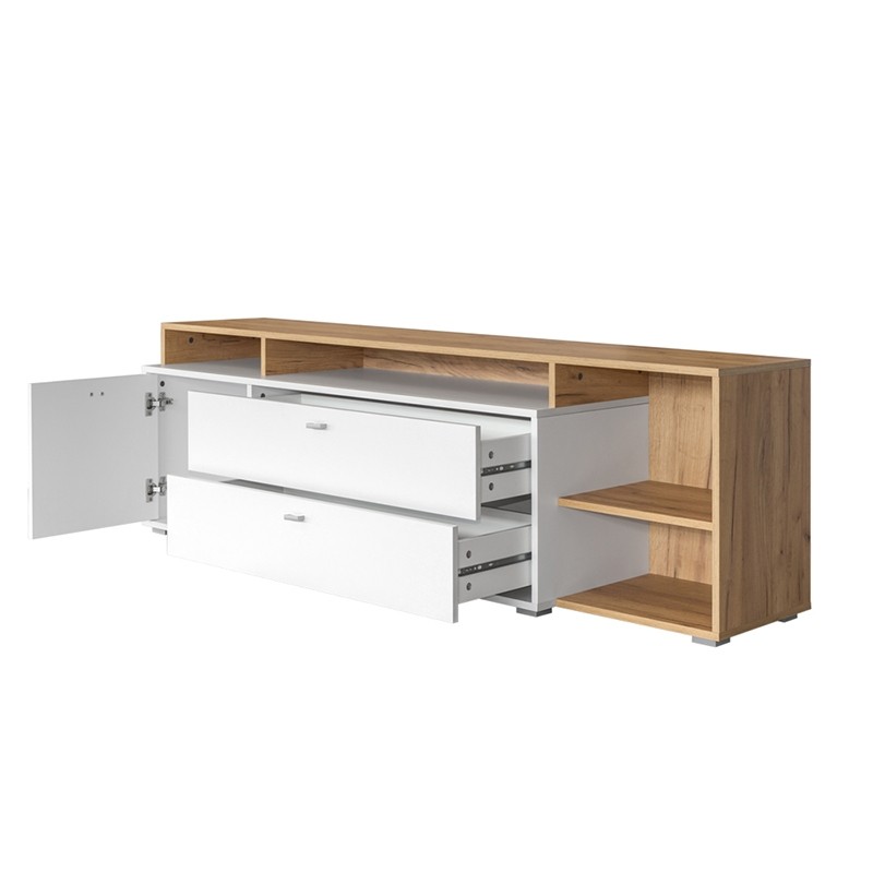 Dnevna soba KARINA vključuje kar pet elementov- polico, TV regal, eno visoko omaro ter dve stenski omarici. Polička je idealen prostor za razne slike in rože, omare vam pa nudijo obilo prostora za shranjevanje raznih pomembnih papirjev, revij, knjig, družabnih iger za goste in ostalih poljubnih predmetov. Vaša dnevna soba bo moderna in vedno lepo pospravljena!