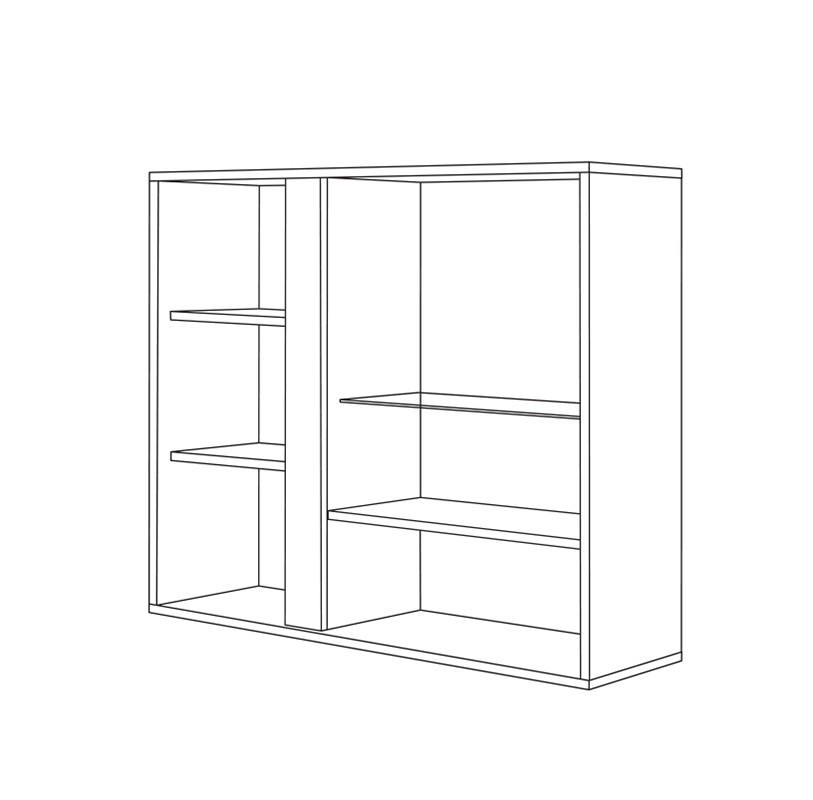 Dnevni boravak KIKO sastoji se od četiri elementa: police, TV regala, visokog ormara i visećeg ormarića. Na policu možete postaviti razne slike, cvijeće i ukrasne predmete, a ormarići nude obilje prostora za pohranu i dobru organizaciju knjiga, časopisa, novina i drugih neobaveznih predmeta. Svaki ormar ima i otvorenu staklenu policu koja dodatno uljepšava izgled dnevnog boravka!