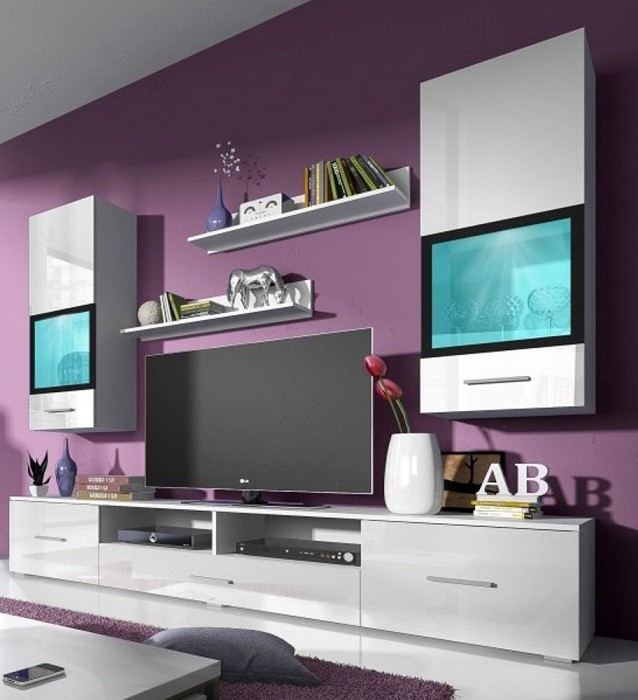 • Mali set: regal za TV, 2x polica, 2x zidni ormarić sa staklom