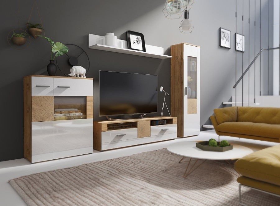 Dnevni boravak BONA će vam nuditi više nego dovoljno prostora za sve vaše stvari i pobrinut će se, da će biti uredno pospremljene. U zidnim ormarićima možete imati vaze i druge dodatke. Uključuje i RGB LED rasvjetu, koja će sigurno napraviti atmosferu u prostoru.