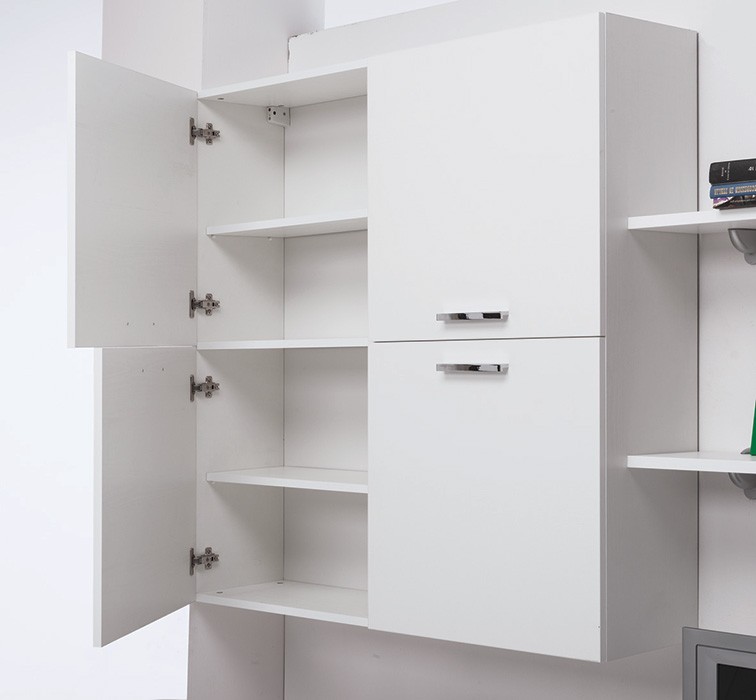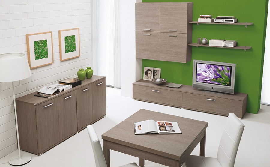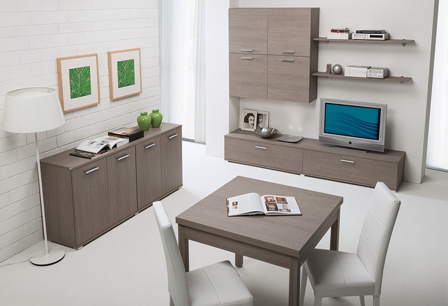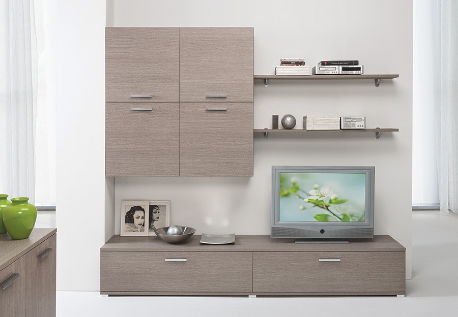 Dnevni boravak je napravljen iz iverice u macesan sivoj boji. Set dnevnog boravka je na raspolaganju u dva sastava i to kao mali set ili veliki set.