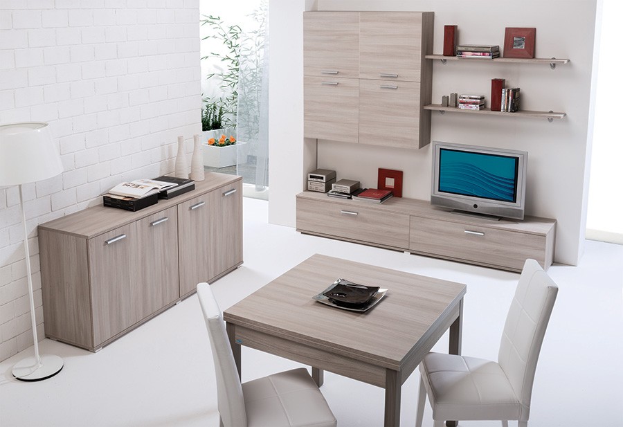 Dnevni boravak je napravljen iz iverice u olmo boji. Set dnevnog boravka je na raspolaganju u dva sastava i to kao mali set ili veliki set.