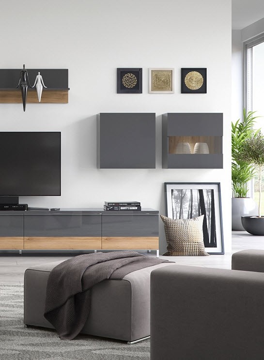 Priuštite svom dnevnom boravku izniman namještaj, koji ne nudi samo dobrog izgleda, već se ističe i kvalitetom i funkcionalnošću. Dnevni boravak uključuje osam elemenata, koji nude puno prostora za pohranu i organizaciju knjiga, društvenim igara te ostalih predmeta, za koje uvijek želite da su dobro organizirani te pri ruci. Svi ormarići i ladičari sadrže funkciju tihog zatvaranja koja vam omogućuje kašu svakodnevnu potrebu, a svi vanjski djelovi premazani su otpornim UV lakom, koji je od ostalih lakova otporniji na vlagu, ogrebotine i oštećenja, tako da će ovaj namještaj ostati duže vremena sačuvan a izgledat će kao nov! Dnevni boravak možete narućiti i po elementima, te ga tako u potpunosti prilagoditi vašim potrebama!