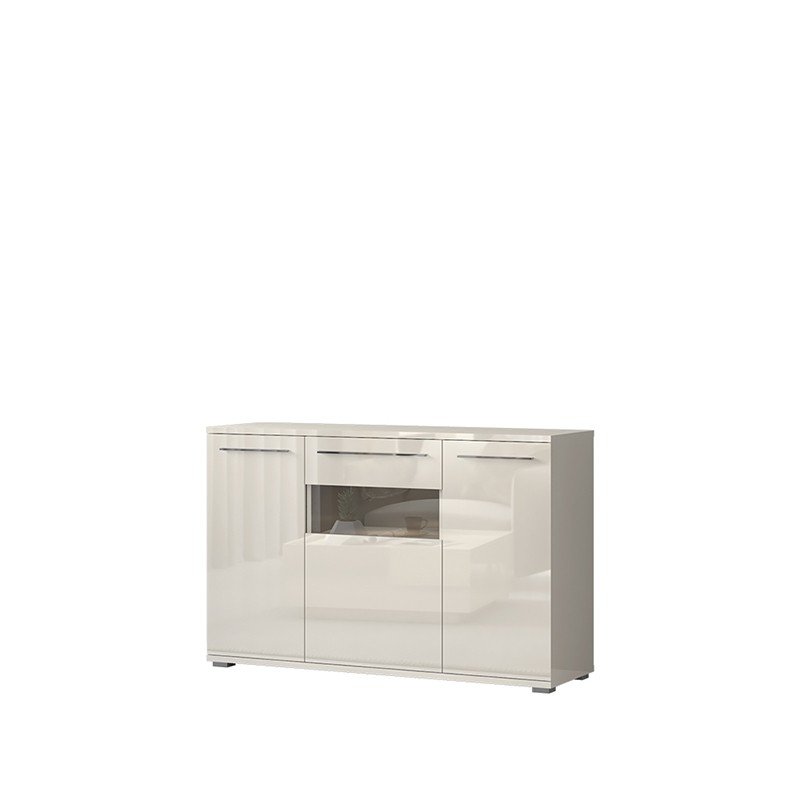 Dnevni boravak RADDA PIANO sastavljen je od šest kvalitetnih te elegantnih elemenata, koji sadrže soft-close mehanizam za tiho zatvaranje te lakšu svakodnevnu upotrebu. Dostupan je u bež boji u visokom sjaju. Vitrina i komoda sadrže i LED rasvjetu. Dnevni boravak je izrađen od oplemenjene iverne ploče, koja je na svim vanjskim djelovima elemenata premazana UV lakom, koji je od standardnih lakova čak 4-puta otporniji na oštećenja.