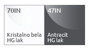 Kolekcija je zaštićena UV lakom, što joj daje duži rok korištenja i posljedično omogućava da traje nekoliko generacija. Također je osigurava od ogrebotina, oštećenja i vlage pa će namještaj dugo izgledati kao nov. UV lak kolekciji daje visoki sjaj, što je čini privlačnijom.