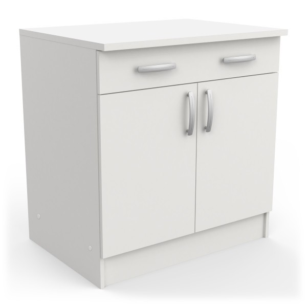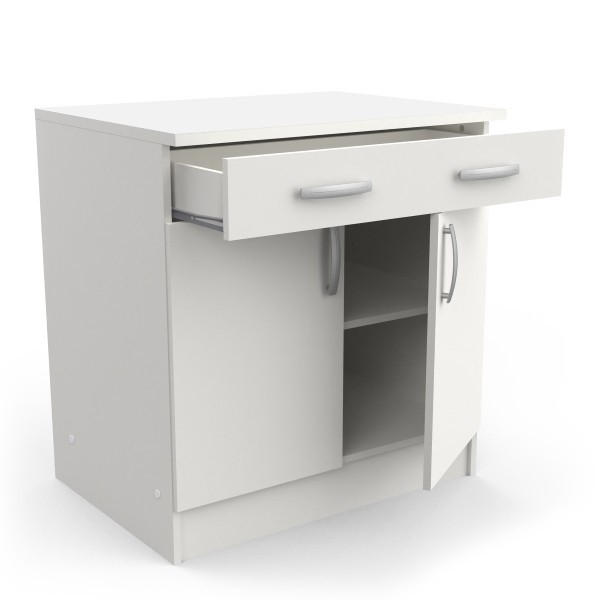 Donji ormarić NOVA 80 izgledat će sjajno u svakom domu, jer je dostupan u elegantnoj vodootpornoj bijeloj boji. Veliki prostor za pohranu podijeljen je jednom policom koja se može podesiti na 3 razine, što vam omogućuje da predmet prilagodite svojim potrebama. Iznad ormarića je široka ladica u koju možete pohraniti pribor i ostalo kuhinjsko posuđe.