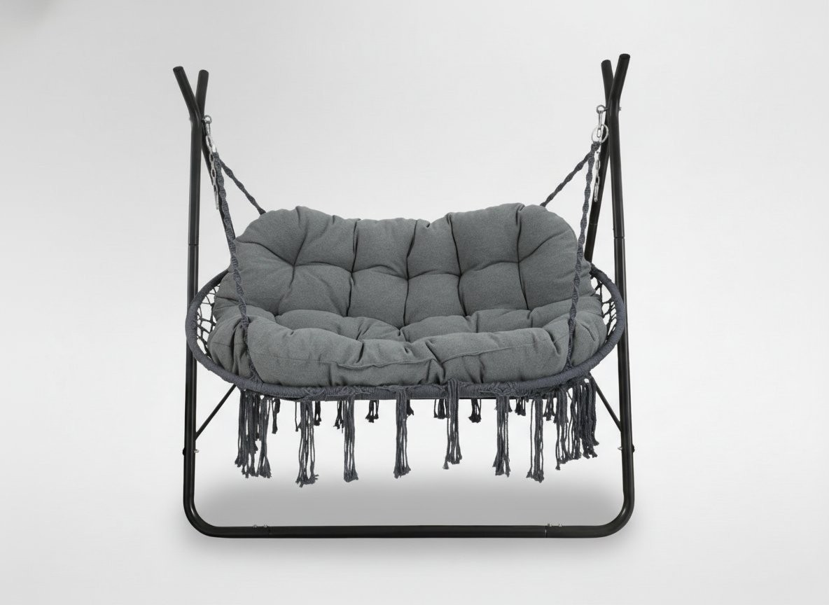 Dvosjedna viseća fotelja Polan (antracit) donosi promišljeno rješenje za opuštanje na terasi, balkonu ali vrtu. Izvedba u nijansama antracit omogućuje jednostavno usklađivanje s različitim vanjskim ambijentima. Materijali, kao što su čelik Ø42 mm, s praškastim premazom, mešanica poliestra i bombaža, doprinose urednom izgledu i praktičnoj upotrebi.