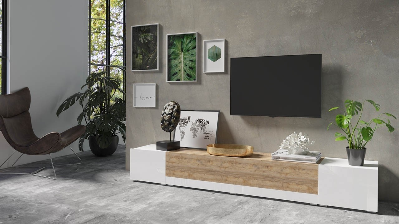Iščete minimalistično TV omarico, ki se lepo poda v moderno stanovanje? TV omarica BERGEN je moderno zasnovana ter na voljo v kombinaciji dveh barv, ki izgledata odlično v vsakem sodobno opremljenem stanovanju. Razdeljena je na tri manjše omarice z vratci, v katere lahko pospravite razne revije, knjige in ostale poljubne predmete.
