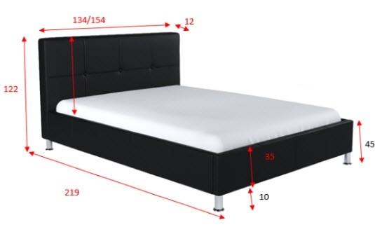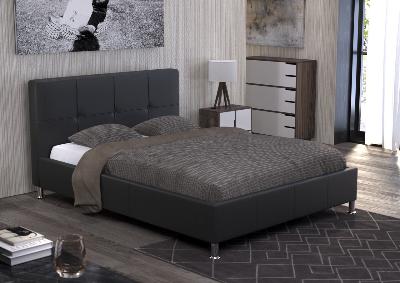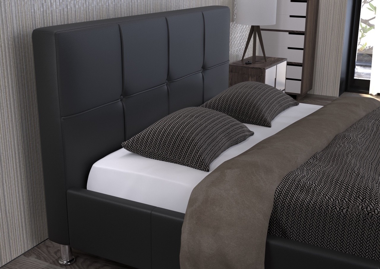 Priuštite vašoj spavaćoj sobi elegantan tapecirani krevet MUNI, koji je tapeciran u otmjenu umjetnu kožu u crnoj boji. Postelja ima uzglavlje u obliku kvadrata, što još dodatno proljepša izgled kreveta. Ima nogice koje su okrugle i visoke 10cm, pa ćete moći bez problema očistiti prašinu ispod kreveta, i s time si osigurati čistiju i svježiju spavaću sobu.