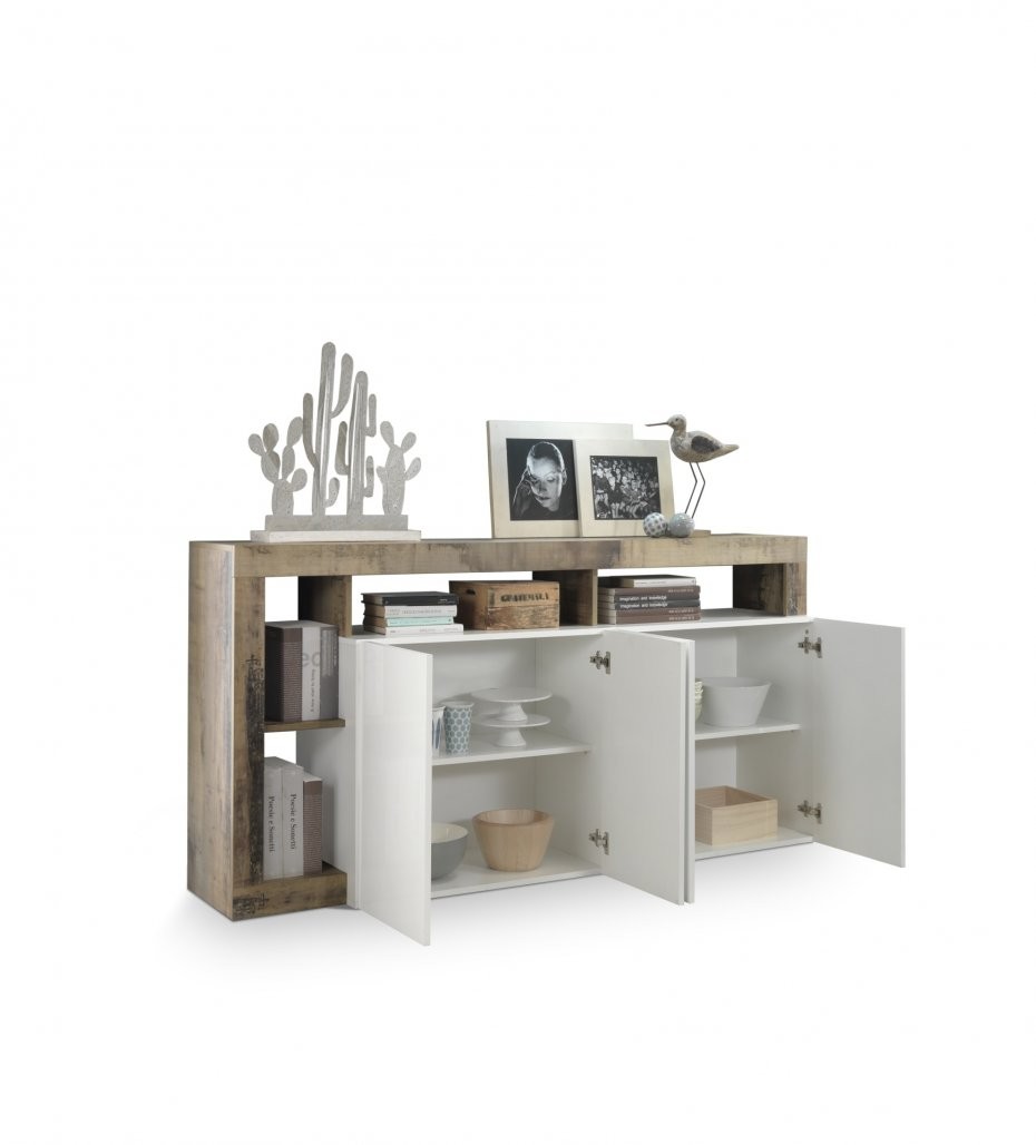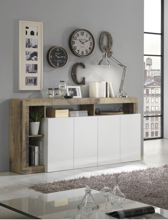 Elegantna bijela komoda s 4 vrata HAMBURG 209030-08P savršen je izbor za svaki moderan dnevni boravak. Kombinacija bijelog visokog sjaja i detalja u boji hrasta PERO stvara osjećaj prostranosti i topline. Komoda nudi obilje prostora za pohranu te svojim suvremenim dizajnom upotpunjuje svaki interijer.