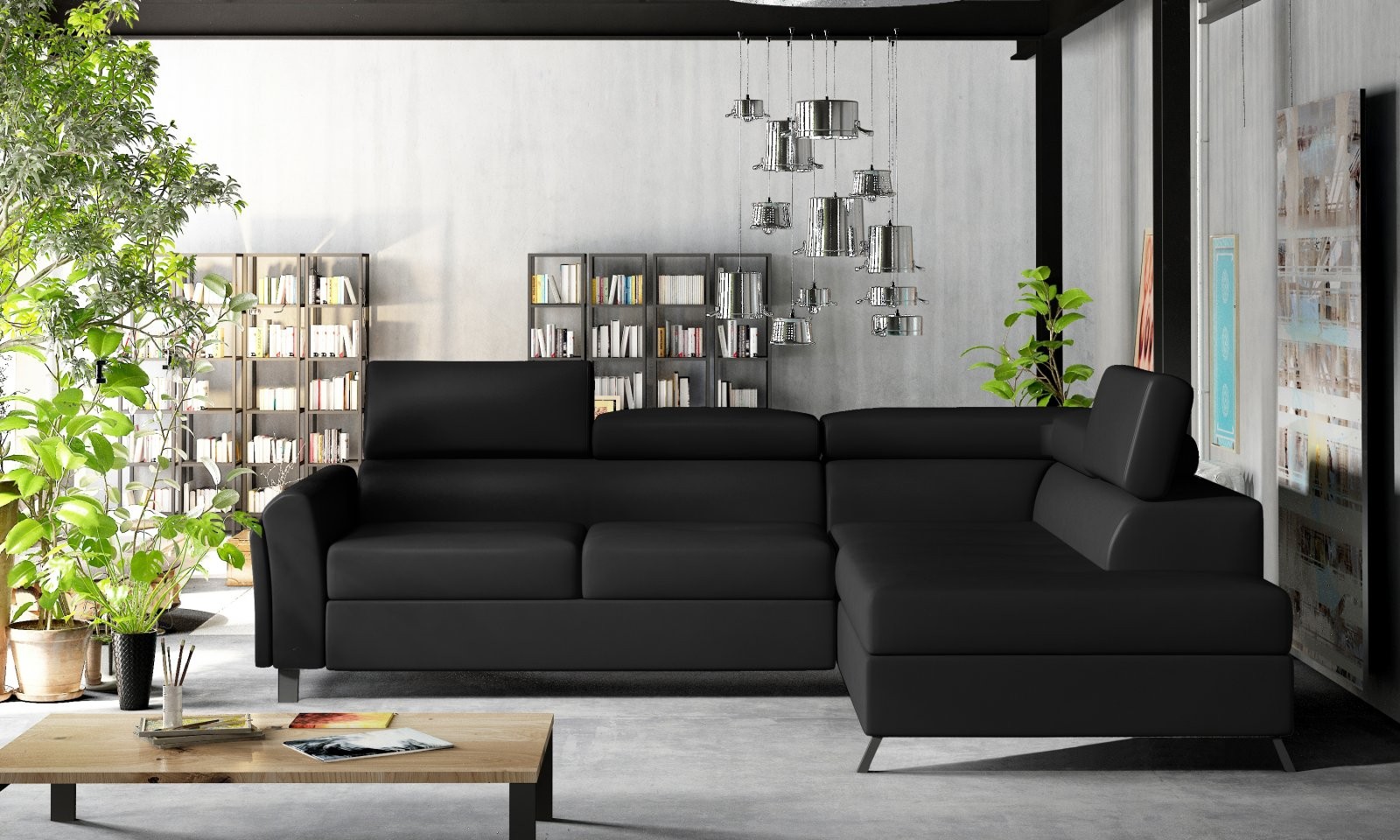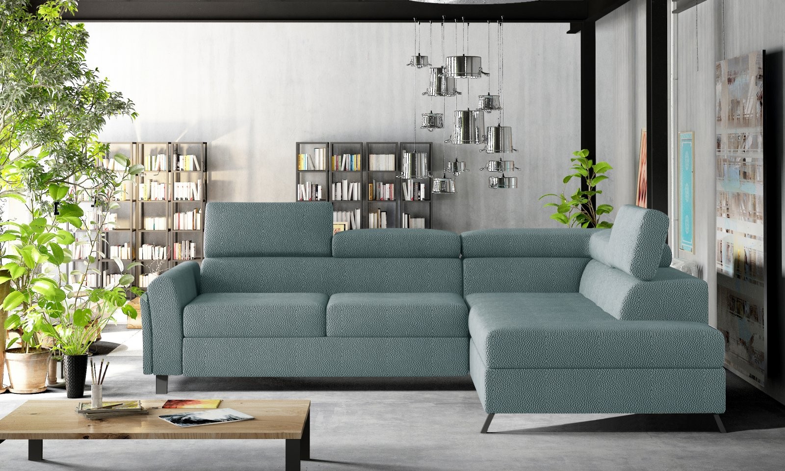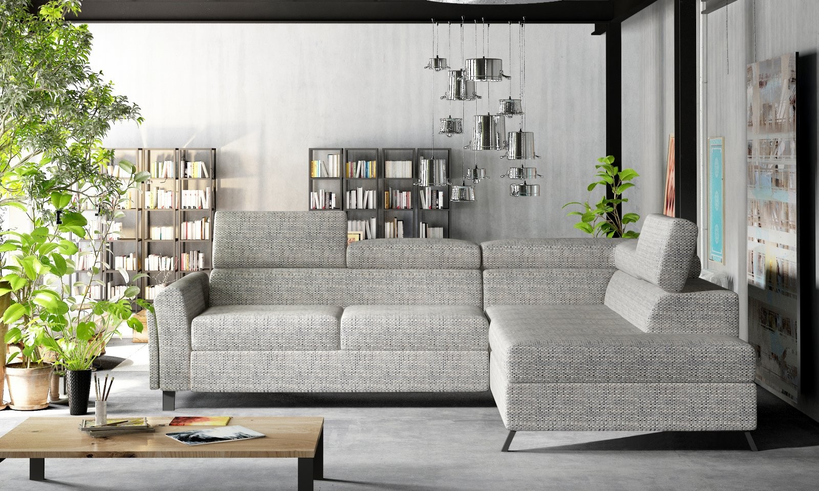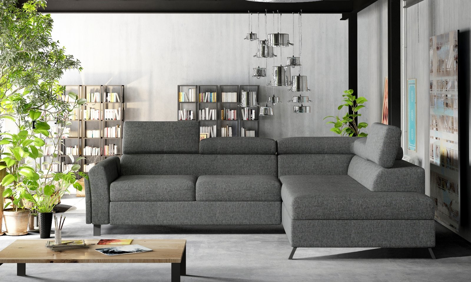 Ova L-oblikovana garnitura dimenzija je 265 x 197 x 95 cm i nudi izvanrednu udobnost tijekom dana i noći. Jednostavnim 'delfin' mehanizmom pretvara se u ležaj dimenzija 125 x 190 cm, dok prostrana kutija za posteljinu u otomanu omogućuje dodatni prostor za pohranu.