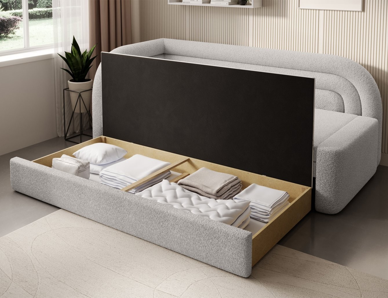Ova sofa nije samo estetski privlačna, već i iznimno praktična. Omogućuje izbor lijeve ili desne orijentacije, što znači da se može prilagoditi svakom prostoru. Uz to, posjeduje funkciju spavanja, što ju čini idealnim rješenjem za goste ili kao dodatni ležaj u dnevnom boravku.