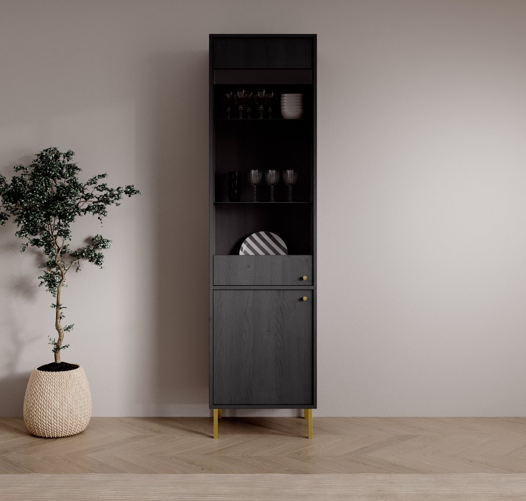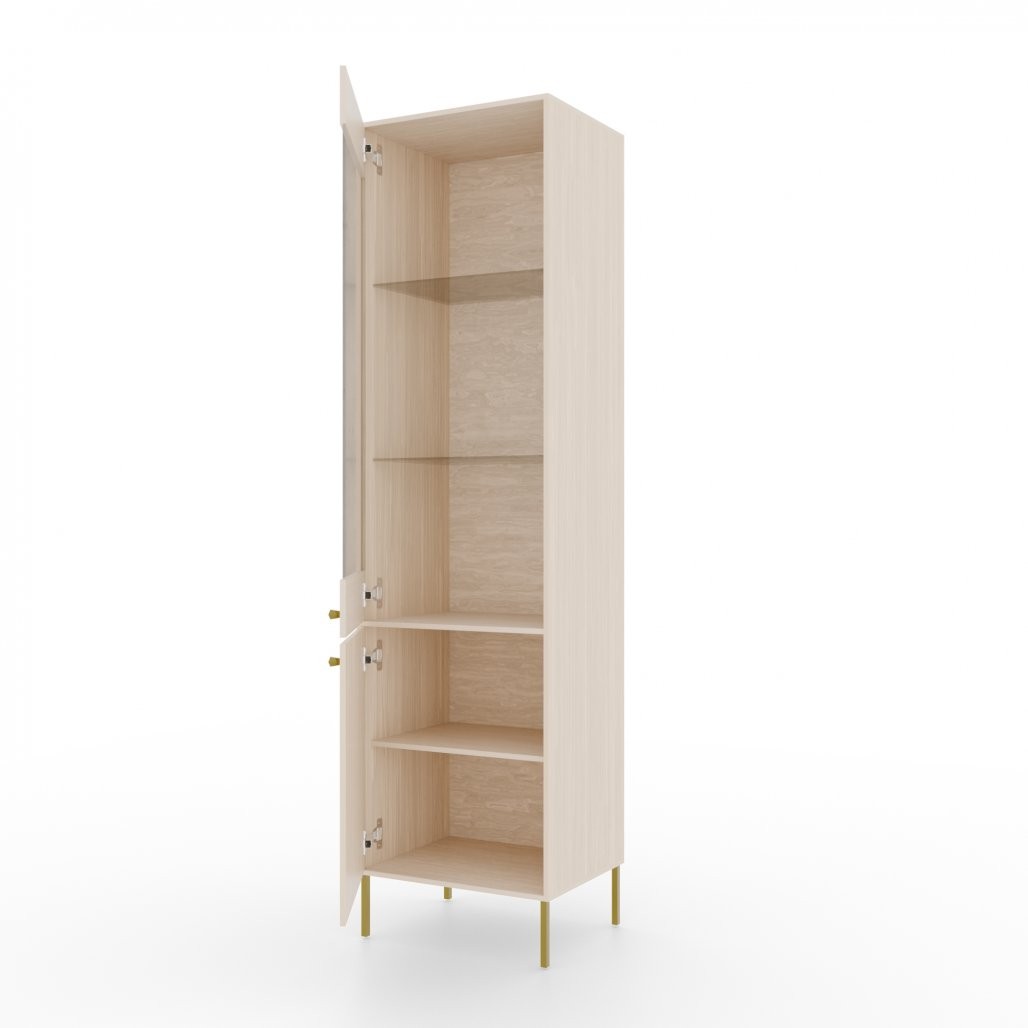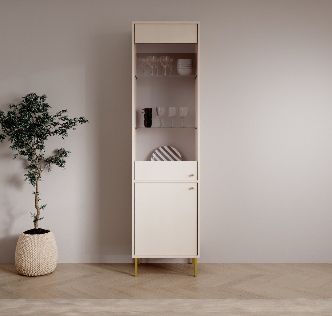 Elegantna vitrina Tili sa staklenim policama savršen je izbor za one koji traže moderan i funkcionalan komad namještaja za dnevni boravak, blagovaonicu ili ured. Svojim jednostavnim, ali profinjenim dizajnom lako se uklapa u različite stilove interijera – od klasičnih do suvremenih.