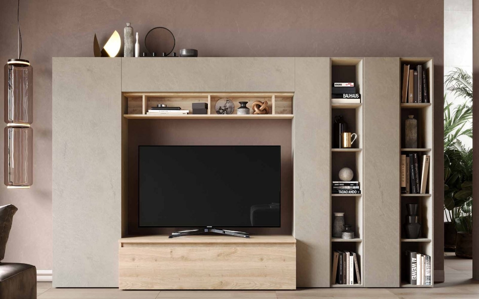 Elegantni TV ormarić u glini i hrastu INFINITY 2.0 900036-AGK savršen je izbor za moderan dnevni boravak. Svojim sofisticiranim dizajnom i funkcionalnošću lako se prilagođava prostoru i unosi eleganciju i toplinu.